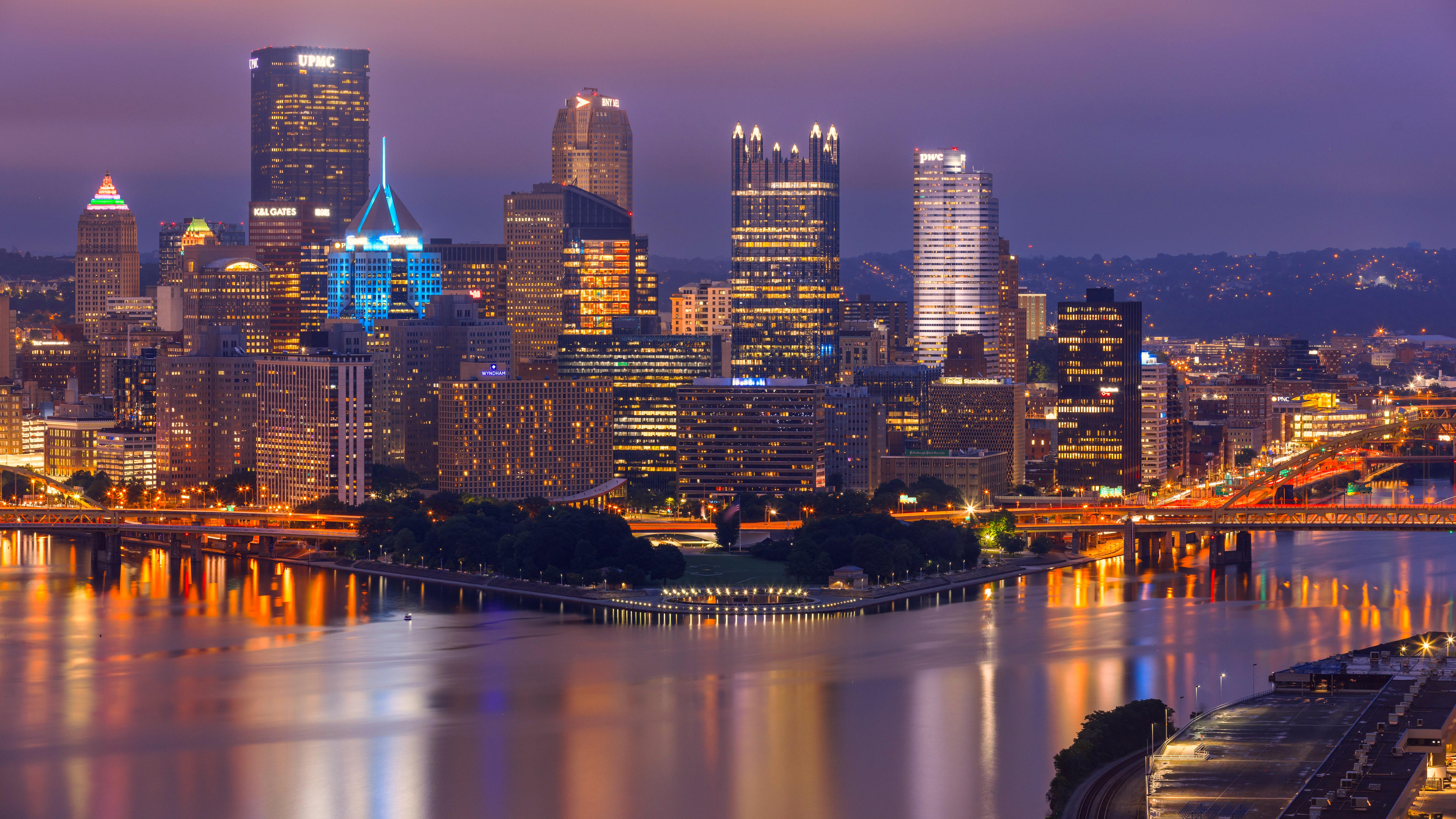 Pittsburgh Skyline, Cityscape, Night Photography, Urban Scene 5K Desktop Wallpaper
