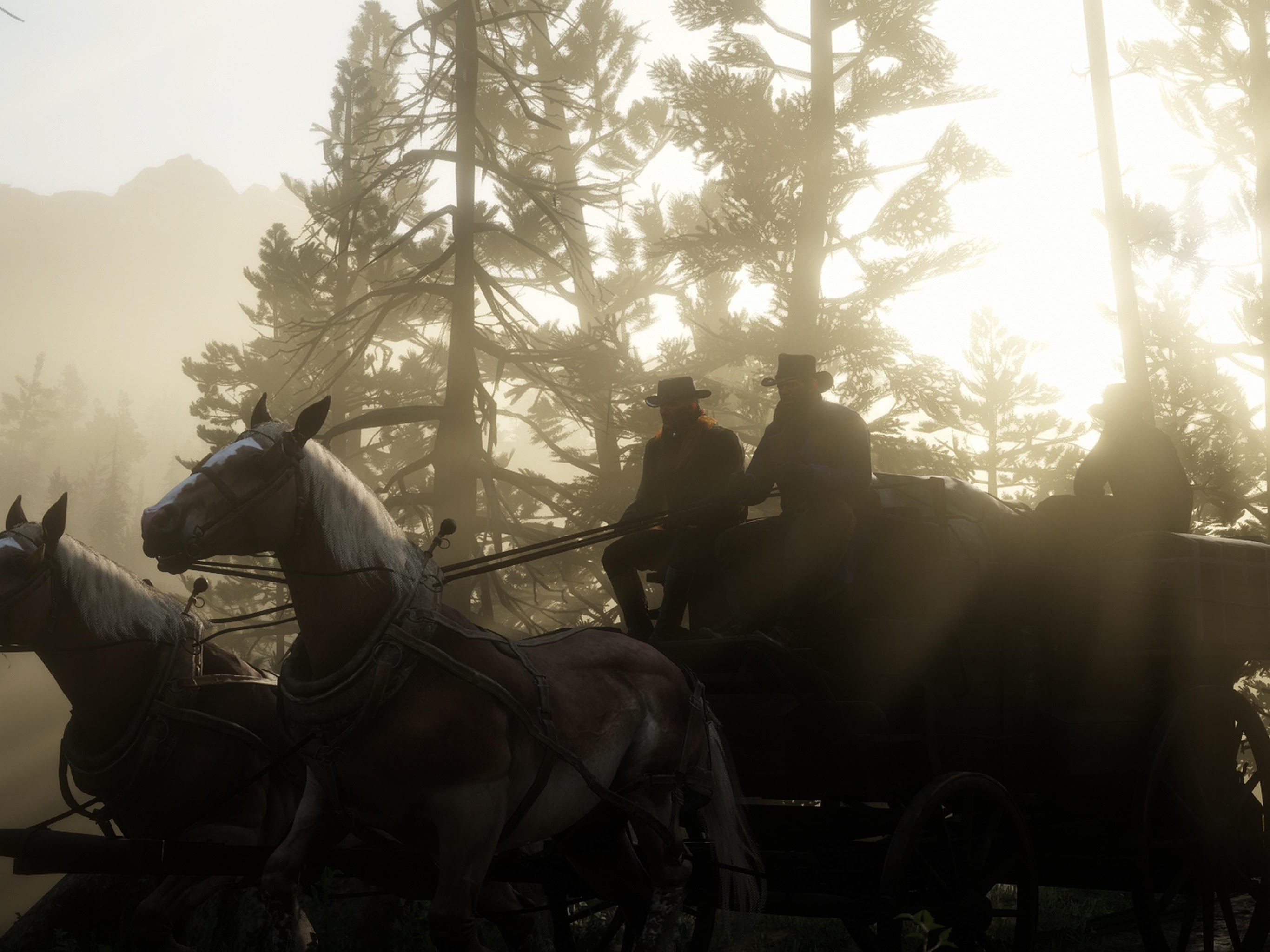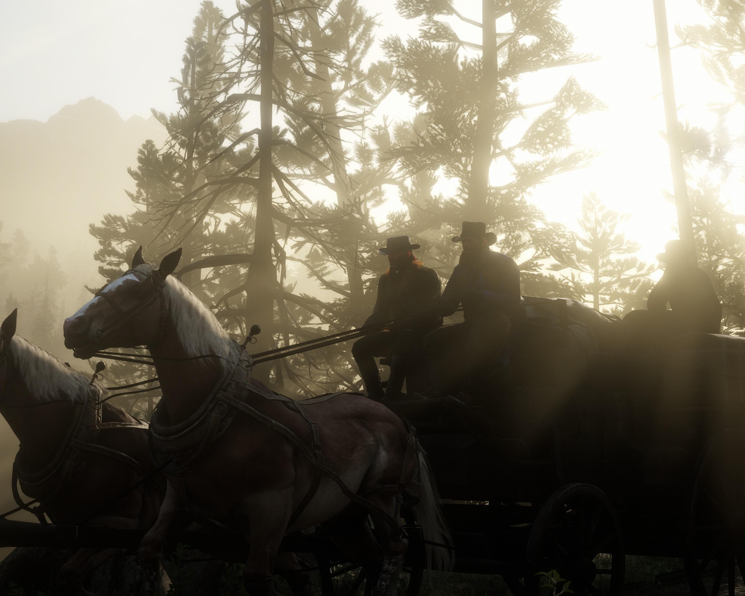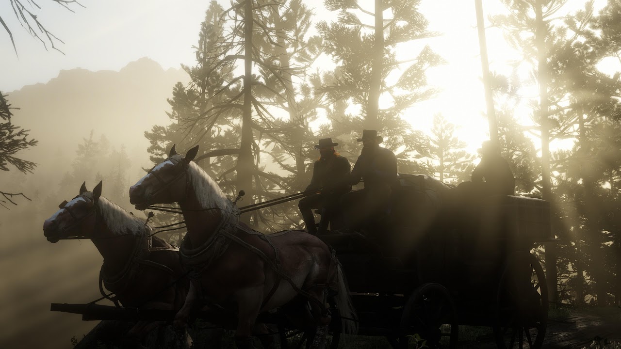Red Dead Redemption 2, Horse-Drawn Carriage, Western, Game Art 4K Desktop and Mobile Wallpaper Background with a maximum resolution of 3840x2160 px.