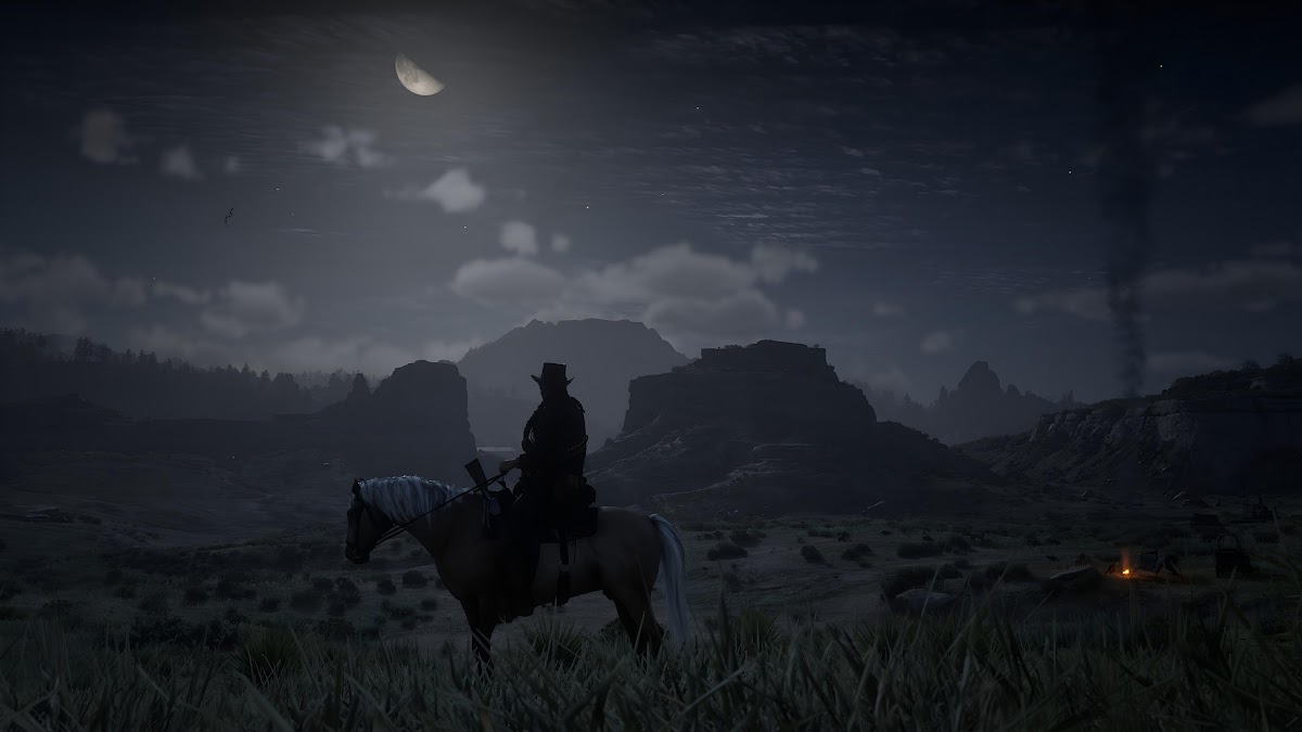 Red Dead Redemption, Cowboy, Night, Landscape 4K Wallpaper Background (3840x2160)