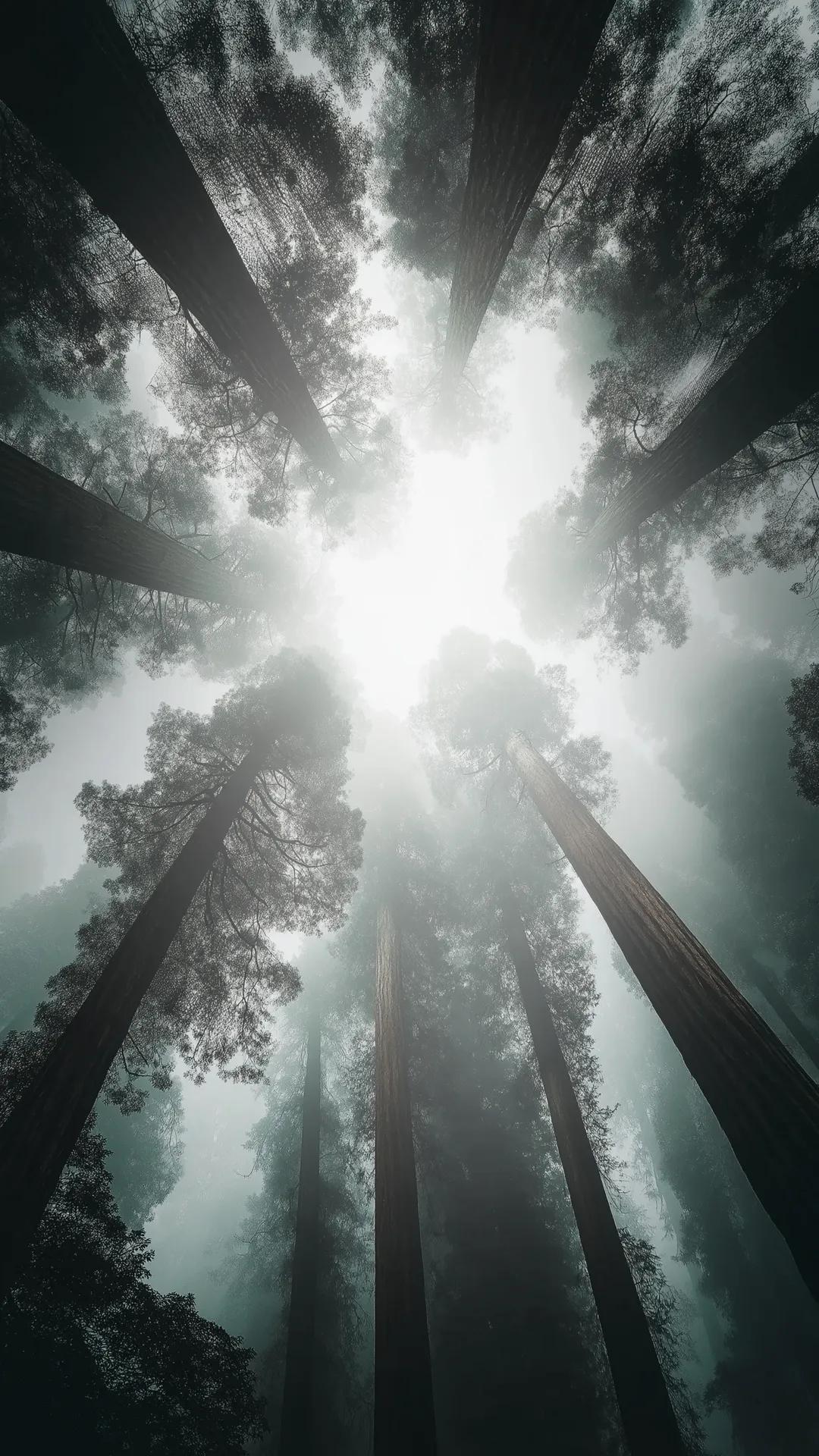 Redwood Trees, Forest, Fog, Nature Full HD iPhone Wallpaper Background with a maximum resolution of 1080x1920 px.