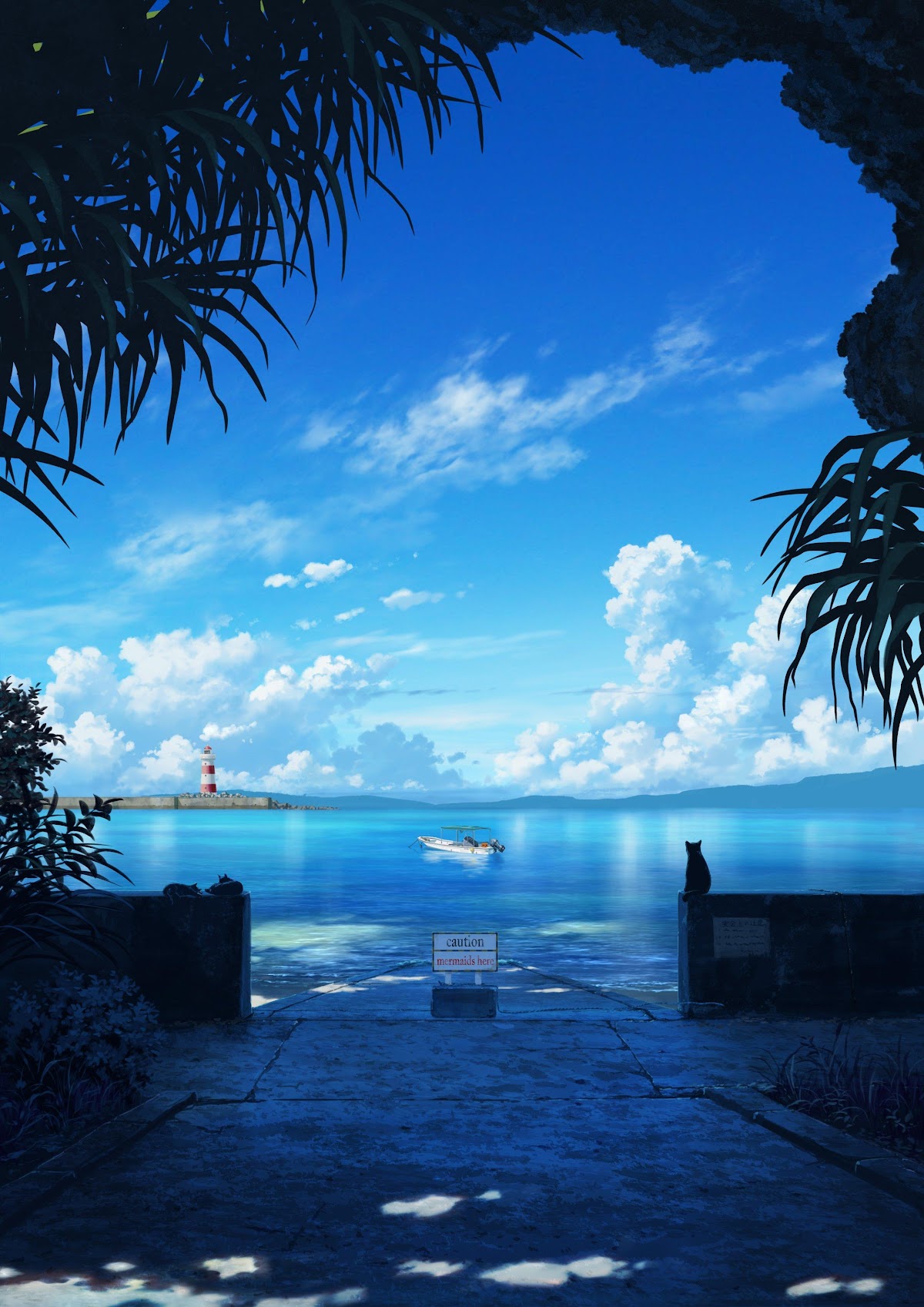 Seascape, Lighthouse, Coastal, Anime Scenery 2K iPhone Wallpaper Background (2480x3508)
