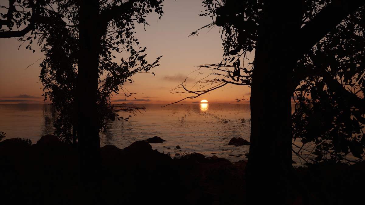 Seascape, Sunset, Trees, Nature 4K Desktop and Mobile Wallpaper Background with a maximum resolution of 4320x2430 px.