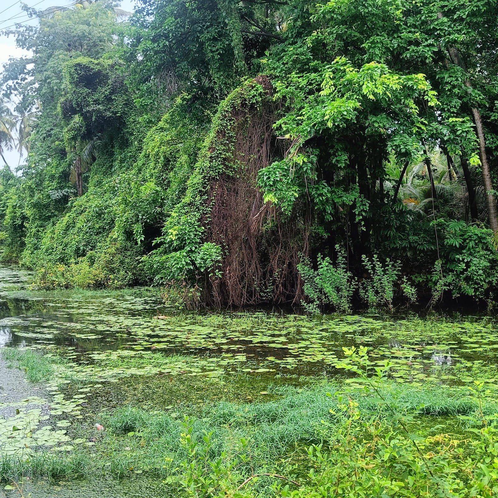 Tropical Landscape, River, Vegetation, Kerala 4K Desktop and Mobile Wallpaper Background with a maximum resolution of 4096x2304 px.