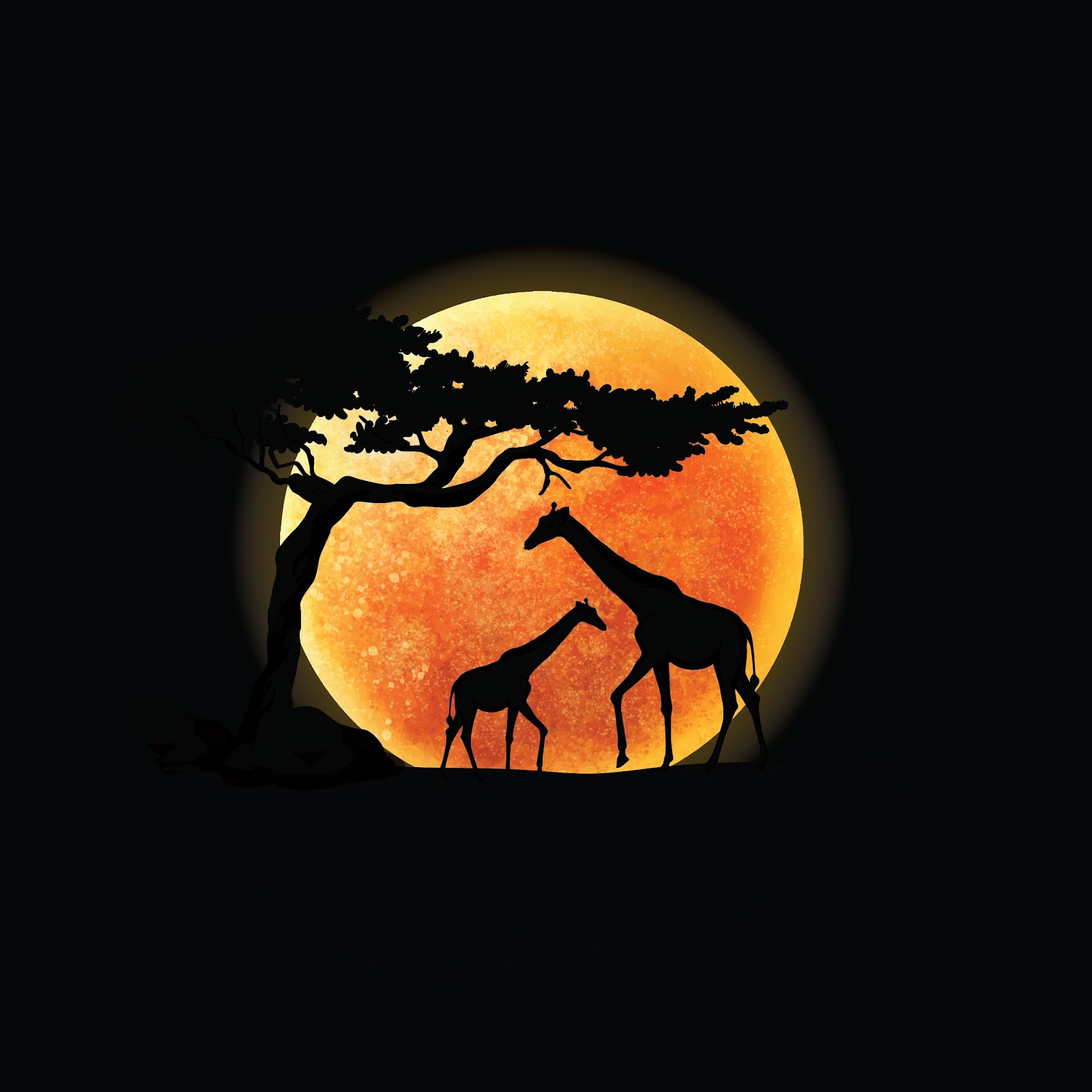 African Safari, Giraffe Silhouette, Wildlife Illustration, Sunset Scenery 5K Desktop and Mobile Wallpaper Background with a maximum resolution of 5120x2880 px.