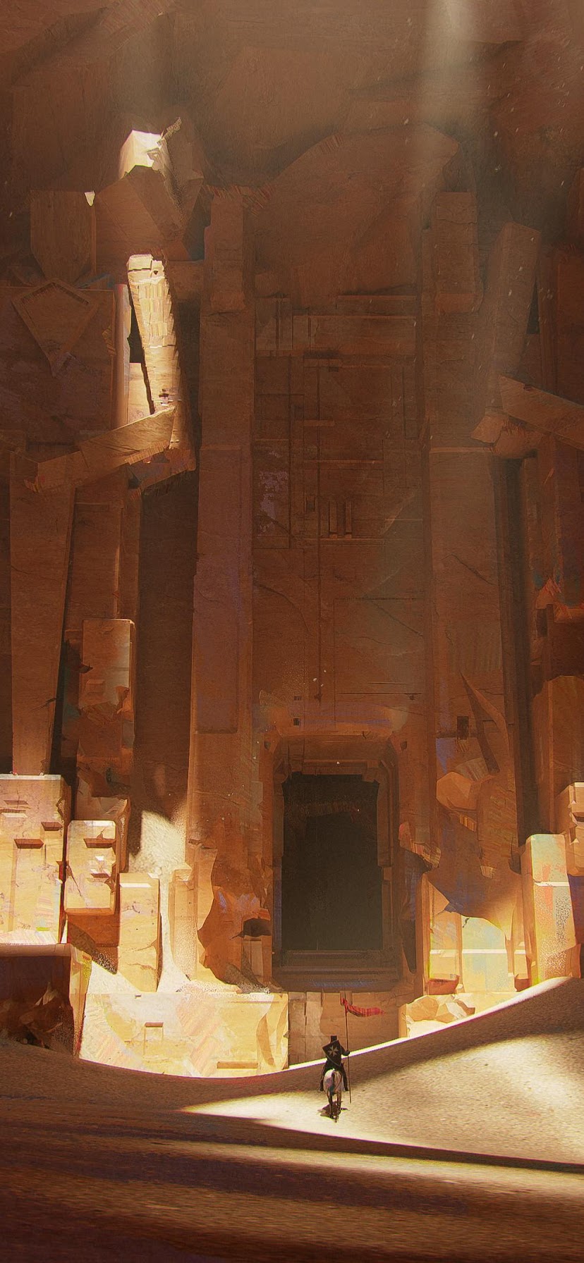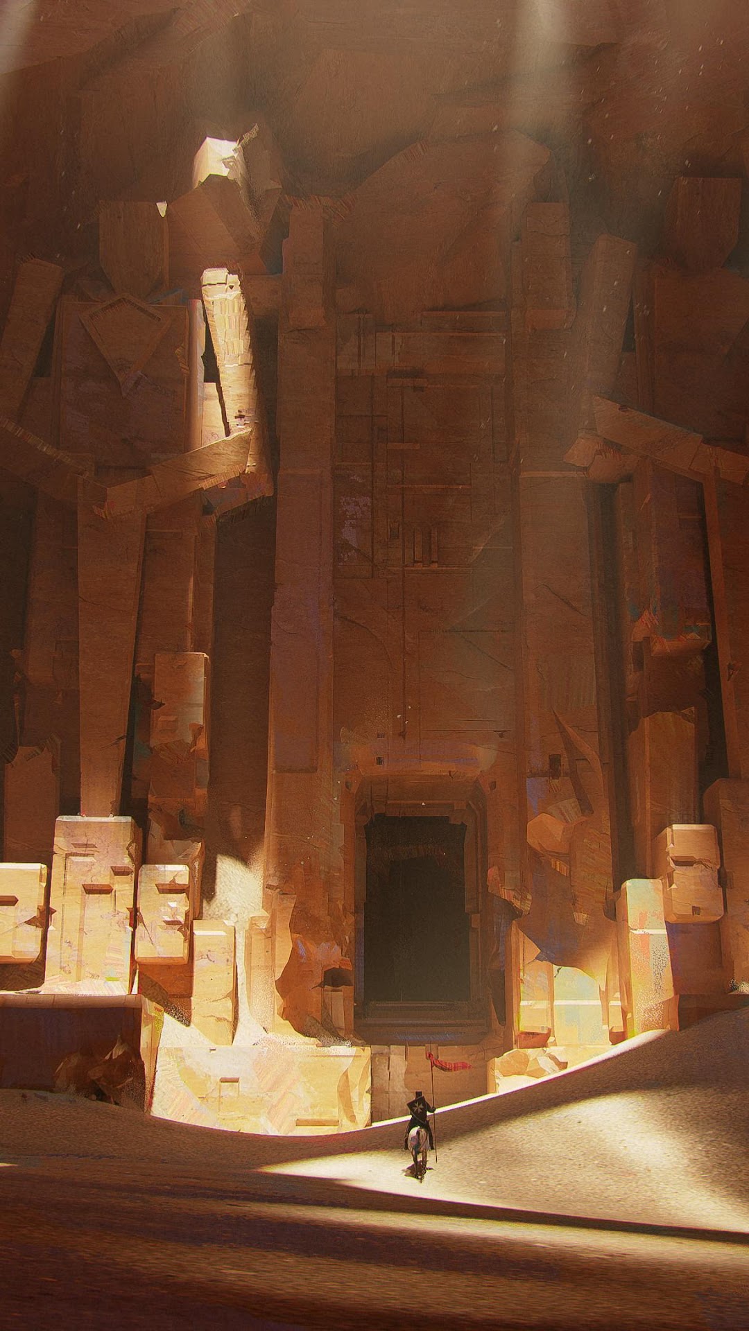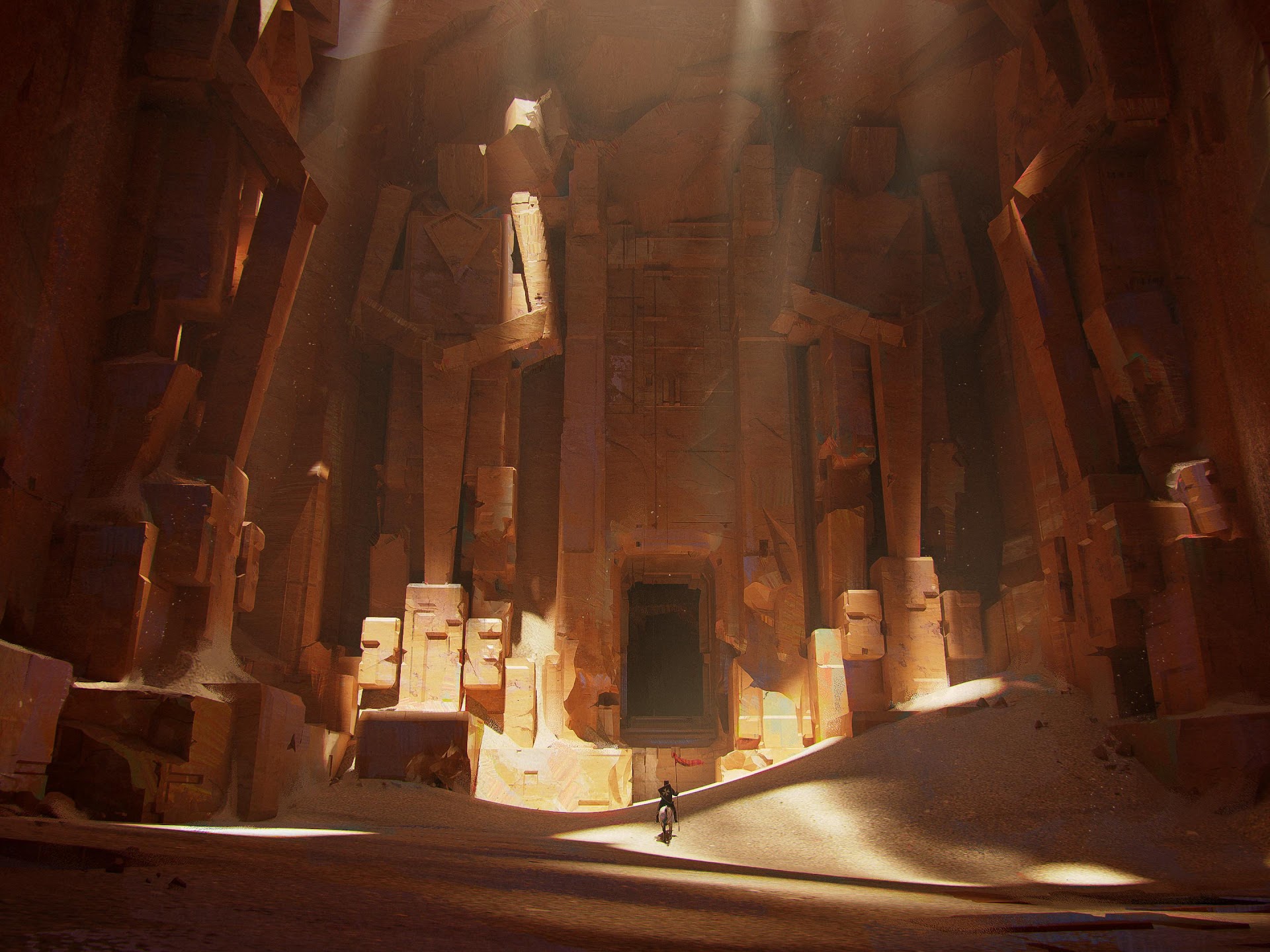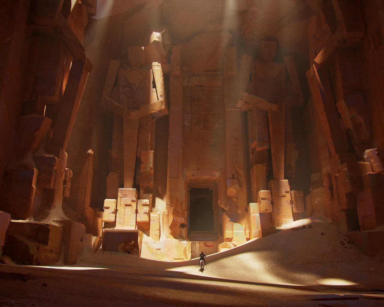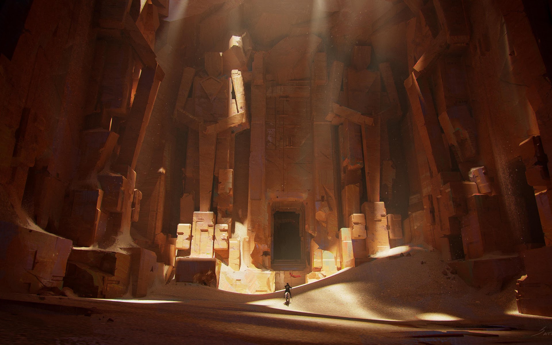 Ancient Tomb, Egyptian Architecture, Desert Landscape, Fantasy Art 4K Desktop and Mobile Wallpaper Background with a maximum resolution of 3840x2160 px.