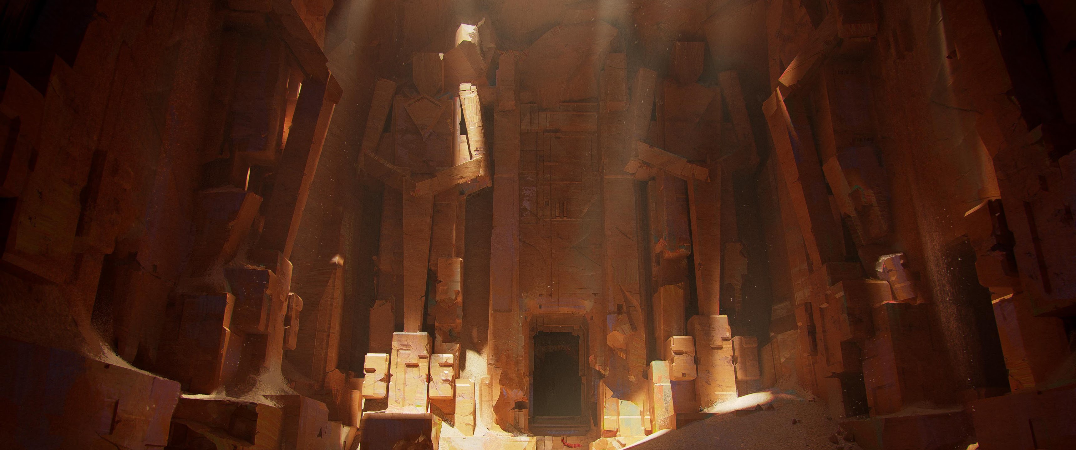 Ancient Tomb, Egyptian Architecture, Desert Landscape, Fantasy Art 4K Desktop Wallpaper