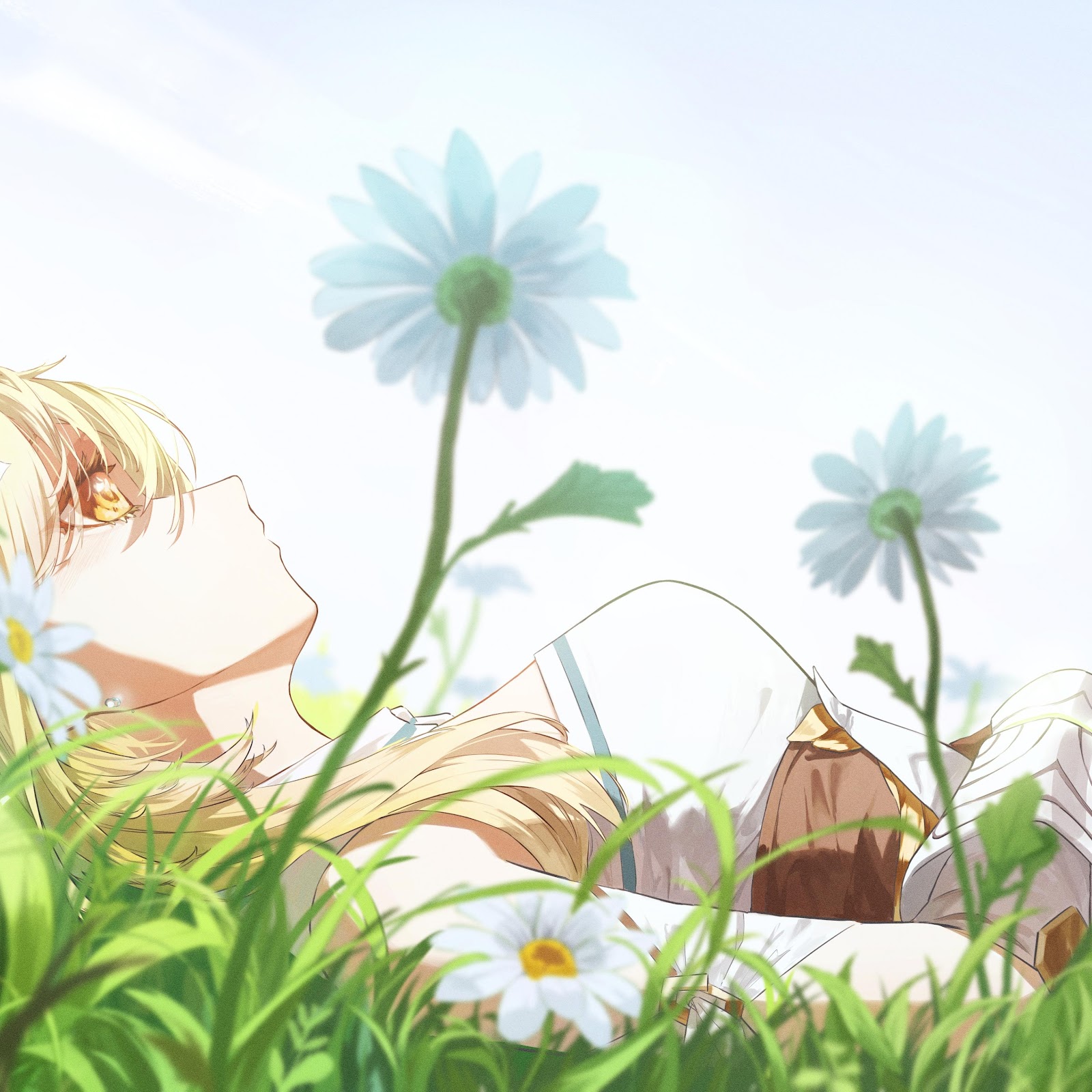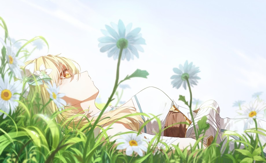 Anime Girl, Daisies, Field, Lying Down 4K PC Wallpaper