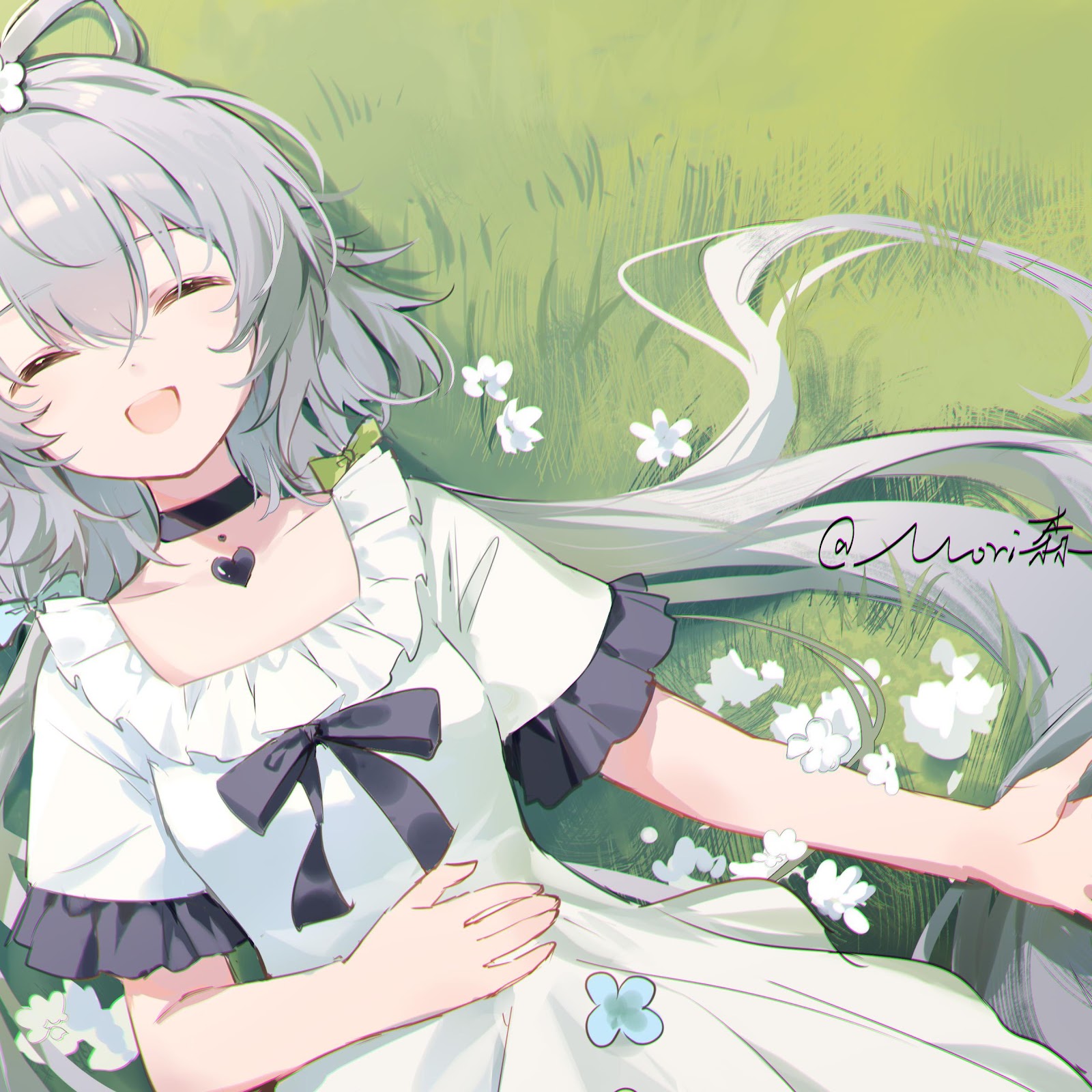 Anime Girl, Meadow, Digital Art, Long Hair 4K Desktop and Mobile Wallpaper Background with a maximum resolution of 5060x2430 px.