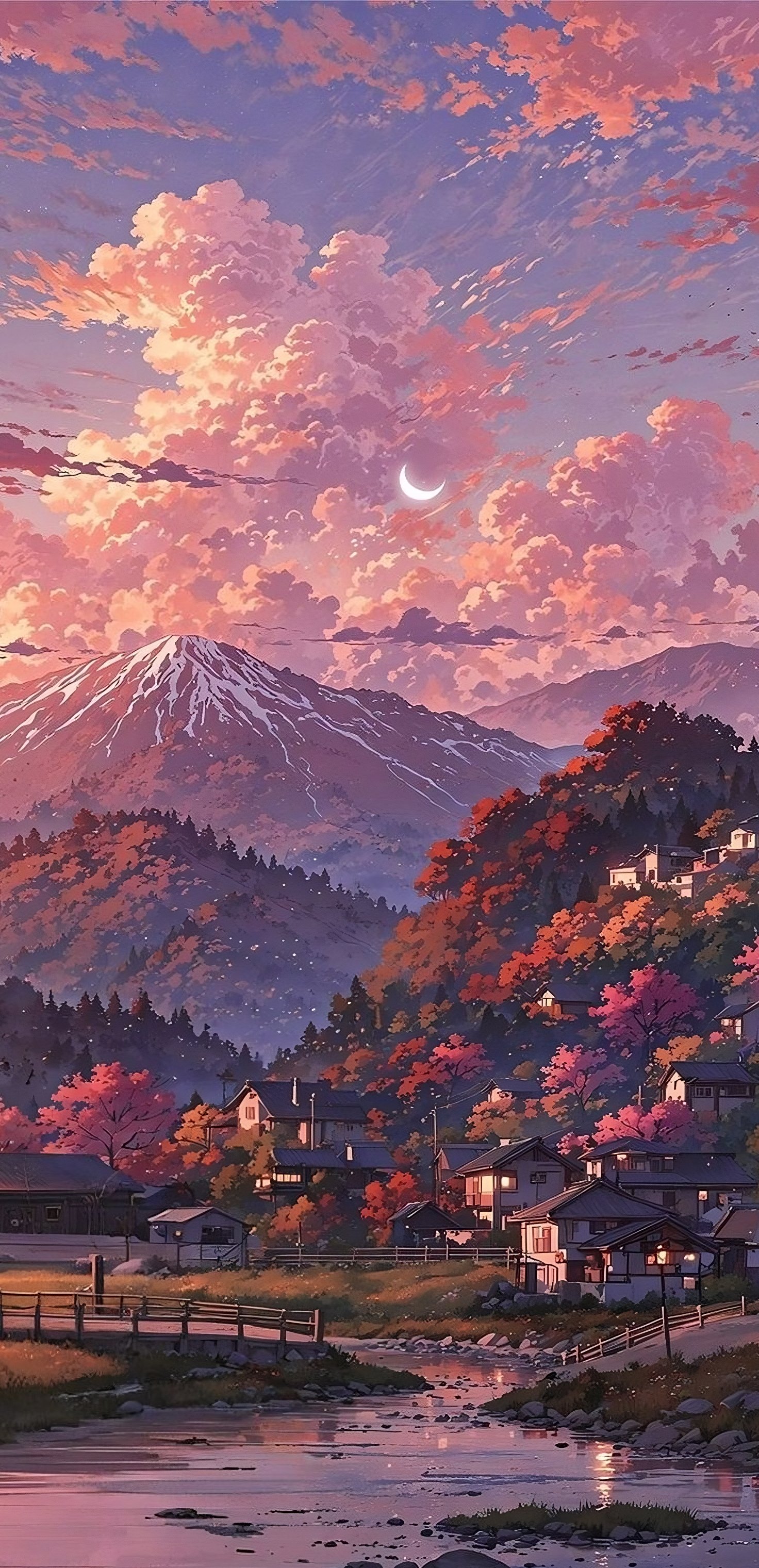 Anime Landscape, Mountain Village, Pink Sky, Crescent Moon 2K iPhone Wallpaper Anime Landscape, Mountain Village, Pink Sky, Crescent Moon 2K iPhone Wallpaper Background with a maximum resolution of 1472x3041 px. xx962 867.04 KB 1472x3041 Download original File Size: Dimensions: Resolution: 2K Format: Mobile ID: Anime Landscape Crescent Moon Mountain Village Pink Sky
