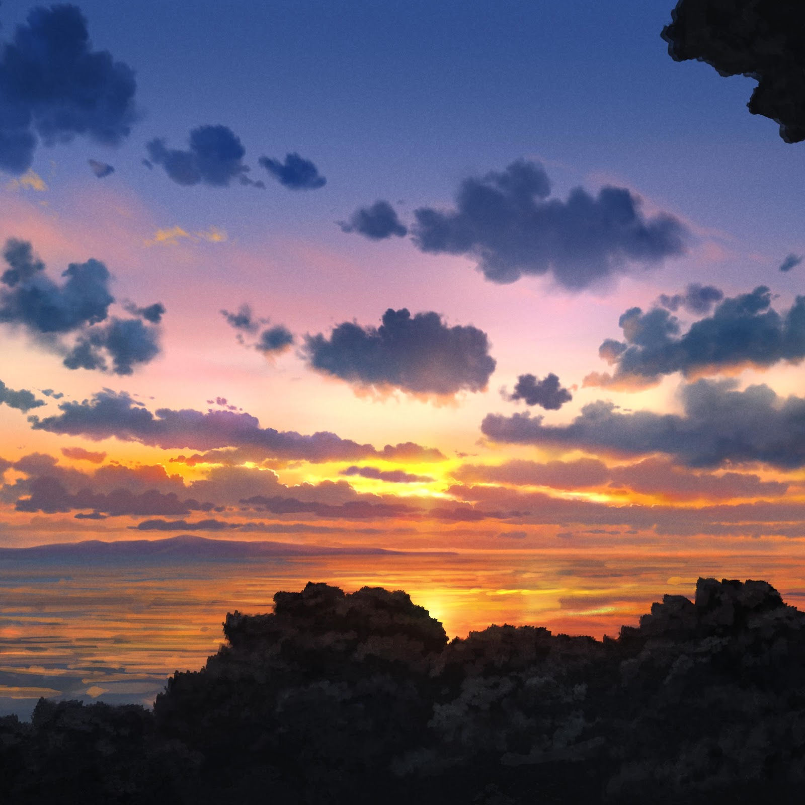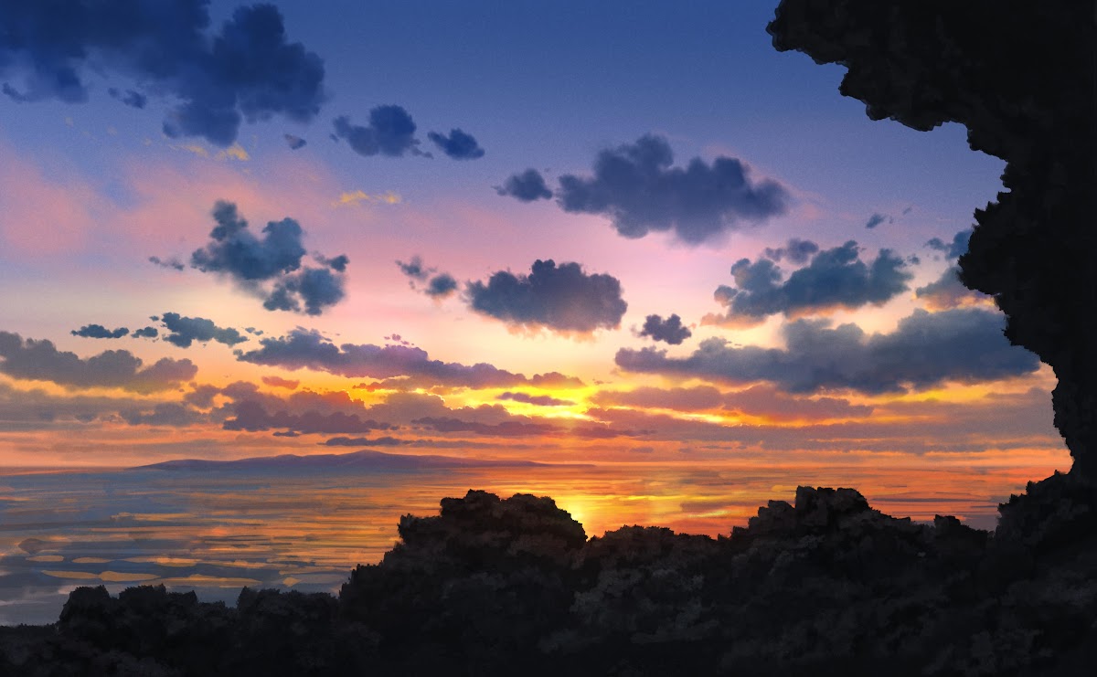 Anime Landscape, Ocean Sunset, Cloudscape, Scenic View 4K Desktop and Mobile Wallpaper Background with a maximum resolution of 4016x2480 px.