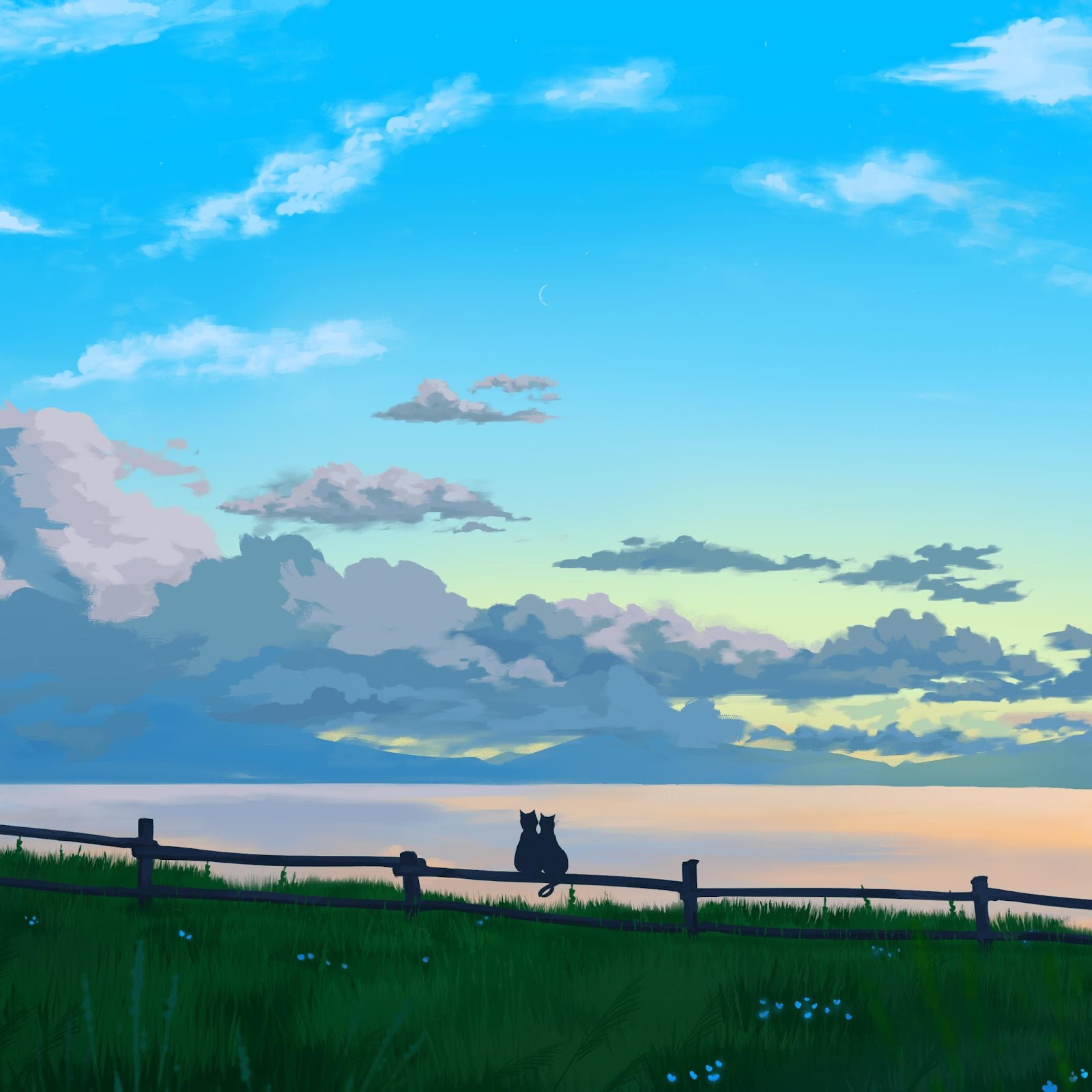 Anime Scenery, Nature Illustration, Cats, Cloudscape 4K Desktop and Mobile Wallpaper Background with a maximum resolution of 3840x2160 px.