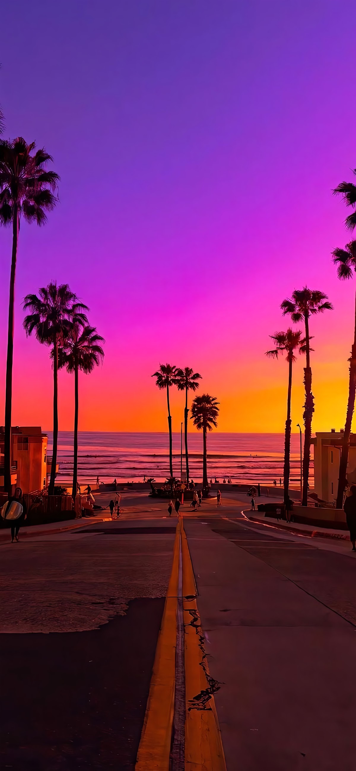 Beach Sunset, Palm Trees, Coastal Scenery, Tropical Landscape 2K iPhone Wallpaper Background with a maximum resolution of 1892x4096 px.
