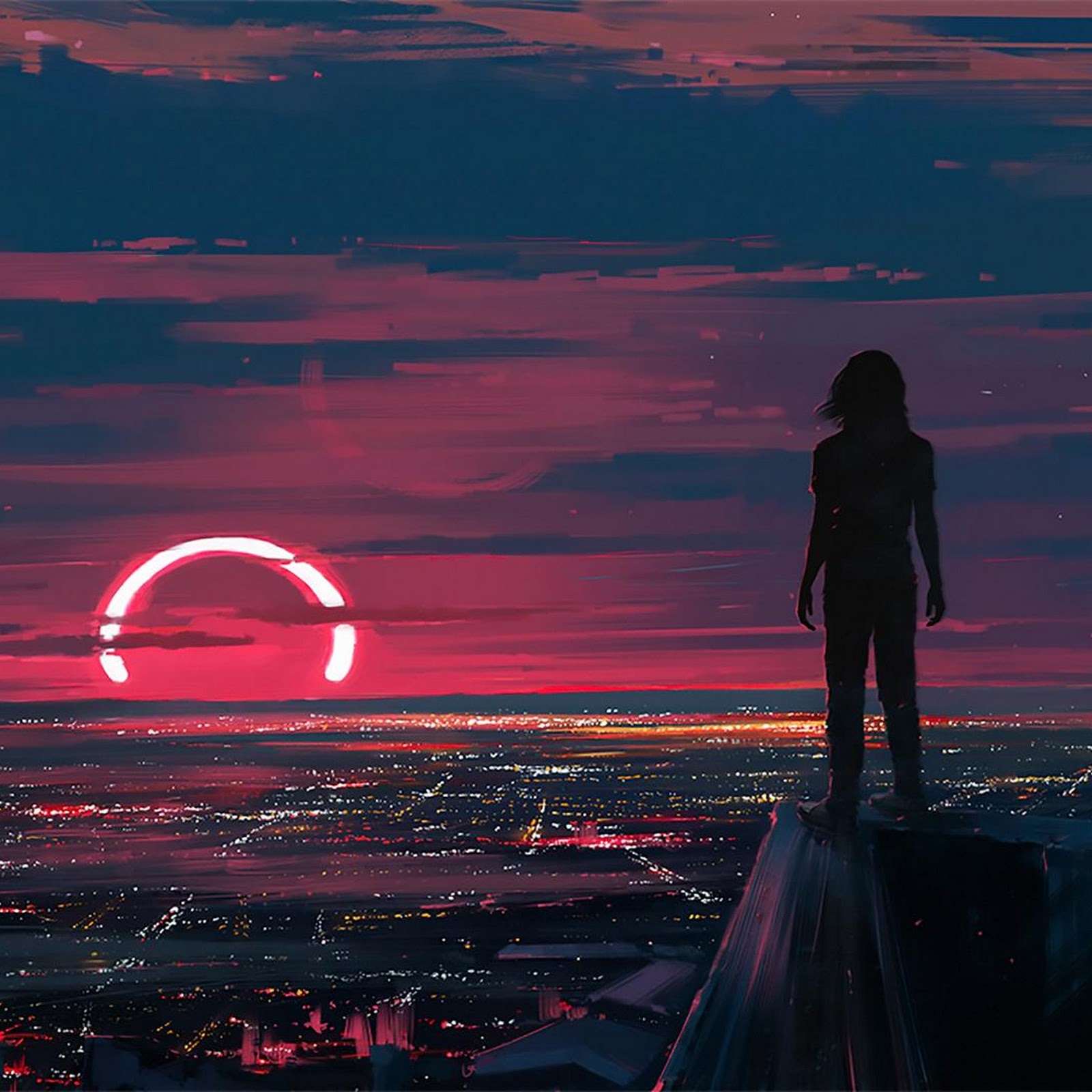 Cityscape, Sunset, Silhouette, Futuristic Art Full HD Desktop and Mobile Wallpaper Background with a maximum resolution of 1920x1080 px.