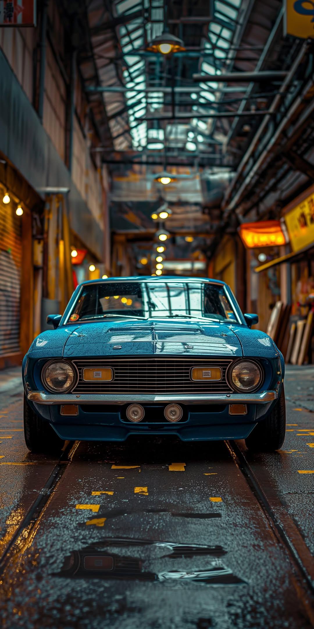 Classic Car, Blue Vehicle, Urban, Automotive Full HD iPhone Wallpaper Background with a maximum resolution of 1080x2160 px.