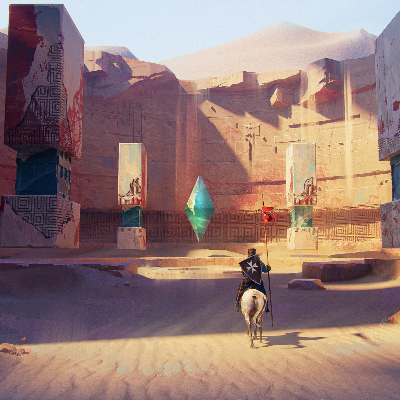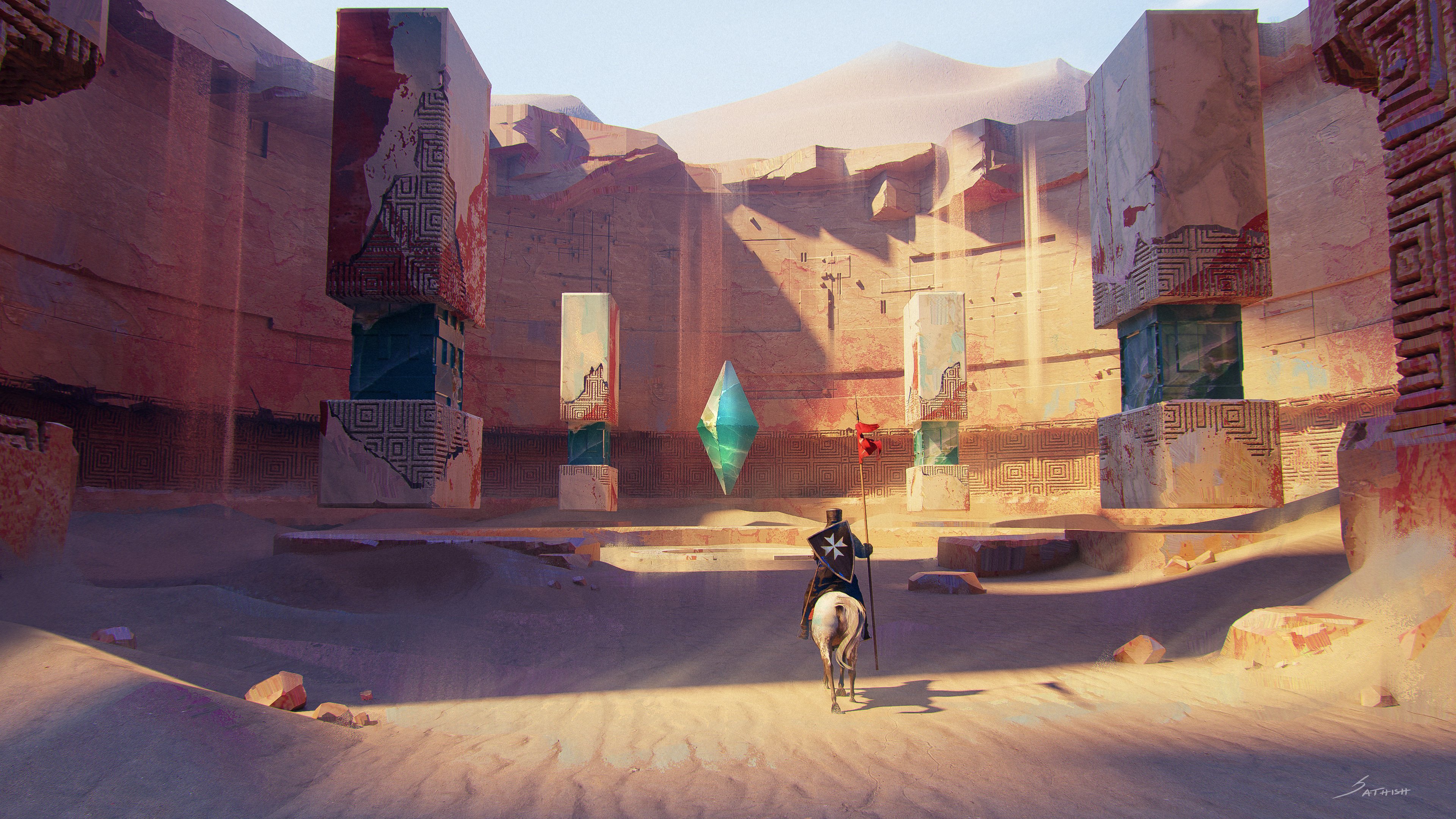 Desert Landscape, Fantasy Art, Ancient Ruins, Digital Painting 4K Desktop and Mobile Wallpaper Background with a maximum resolution of 3840x2160 px.