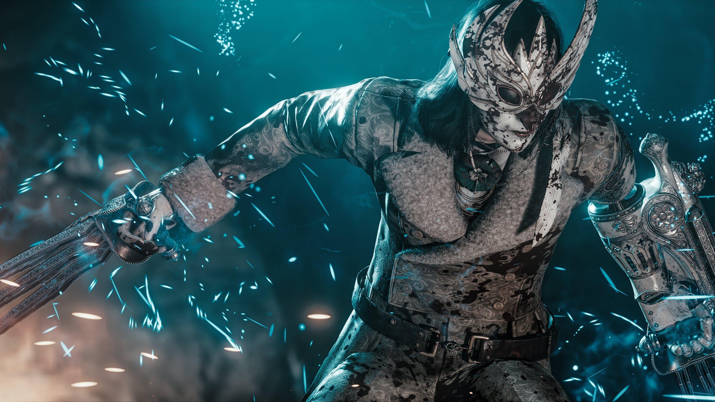 Fantasy, Character, Warrior, Mask 2K Ultrawide Desktop and Mobile Wallpaper Background with a maximum resolution of 4096x1715 px.