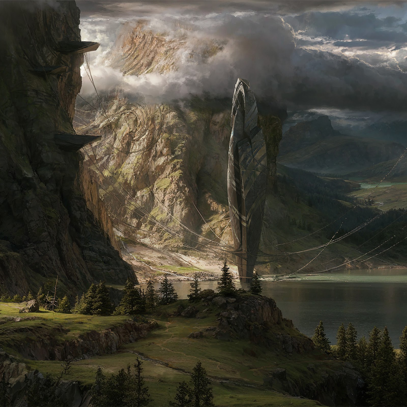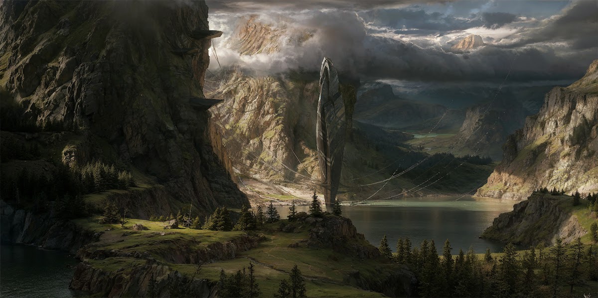 Fantasy Landscape, Digital Art, Mountain Vista, Concept Art 2K Desktop Wallpaper