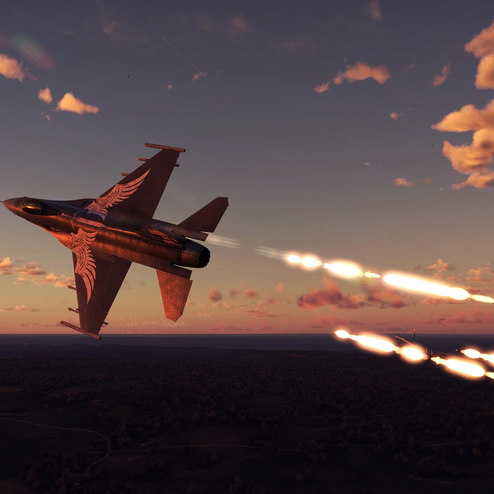 Fighter Jet, Flares, Military Aircraft, Sunset 4K Desktop Wallpaper