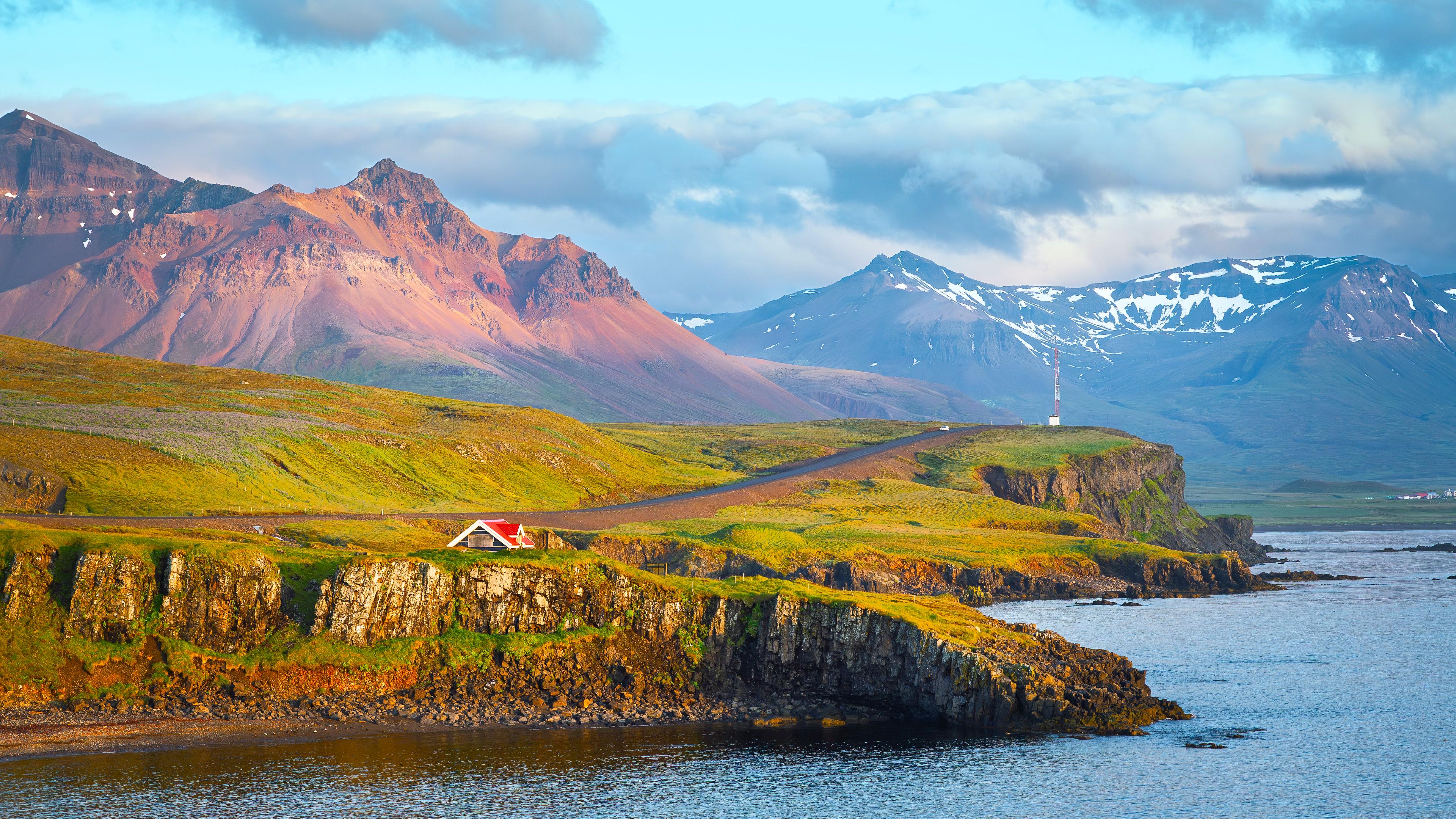 Iceland, Landscape, Mountains, Coastline 4K Desktop Wallpaper