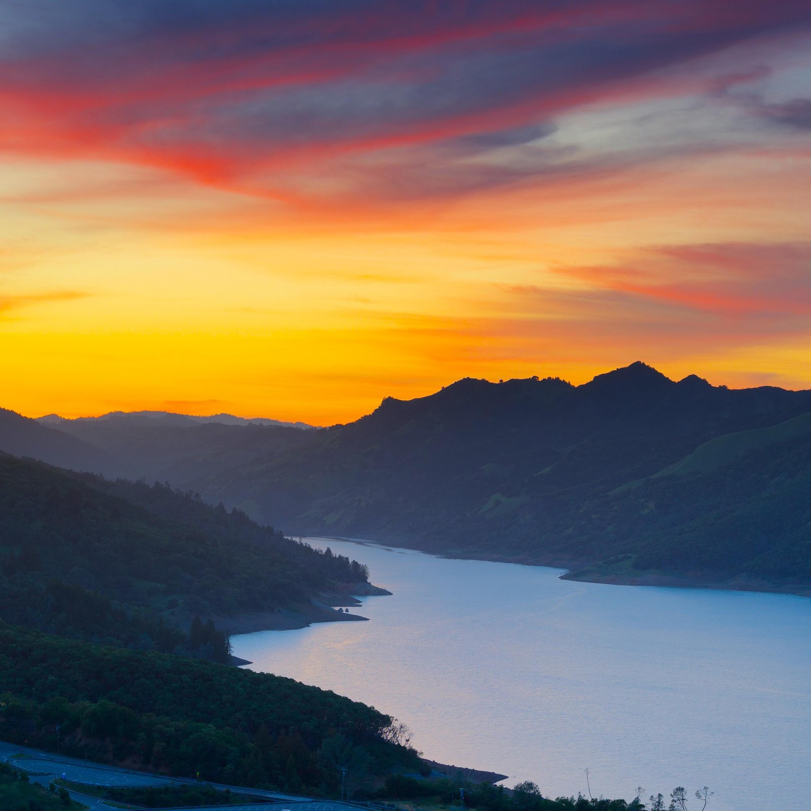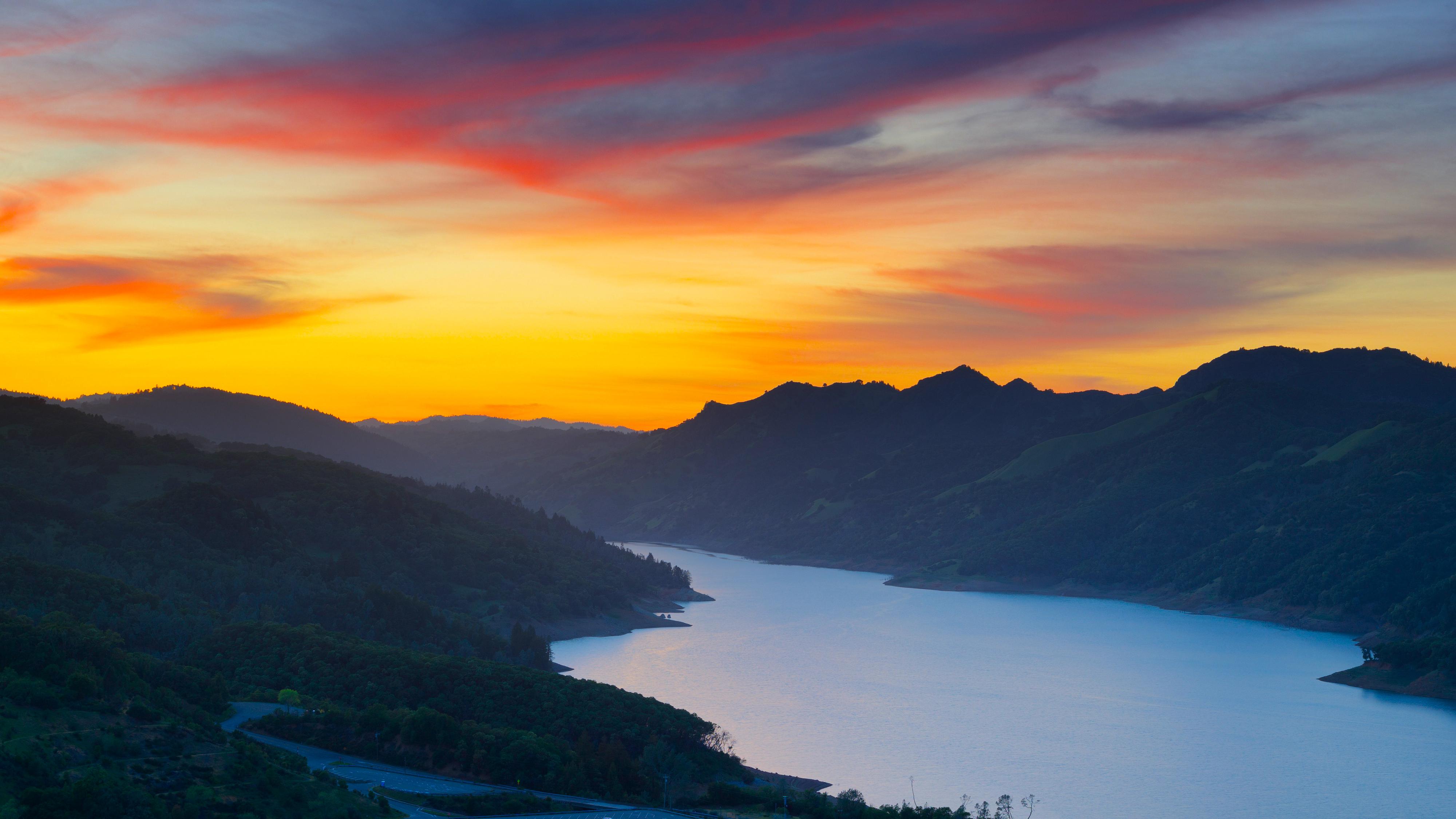 Lake, Mountains, Sunset, Scenery 4K Desktop and Mobile Wallpaper Background with a maximum resolution of 4000x2251 px.