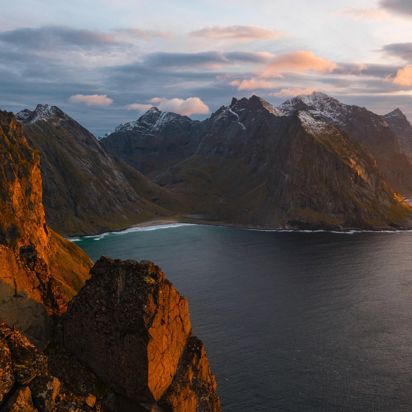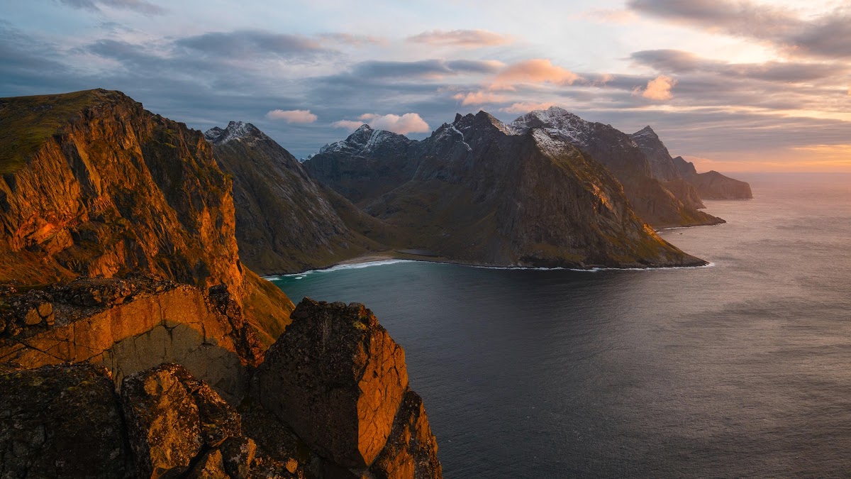 Lofoten, Norway, Mountain, Coastline 4K Desktop and Mobile Wallpaper Background with a maximum resolution of 3840x2160 px.