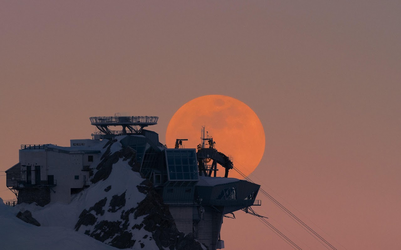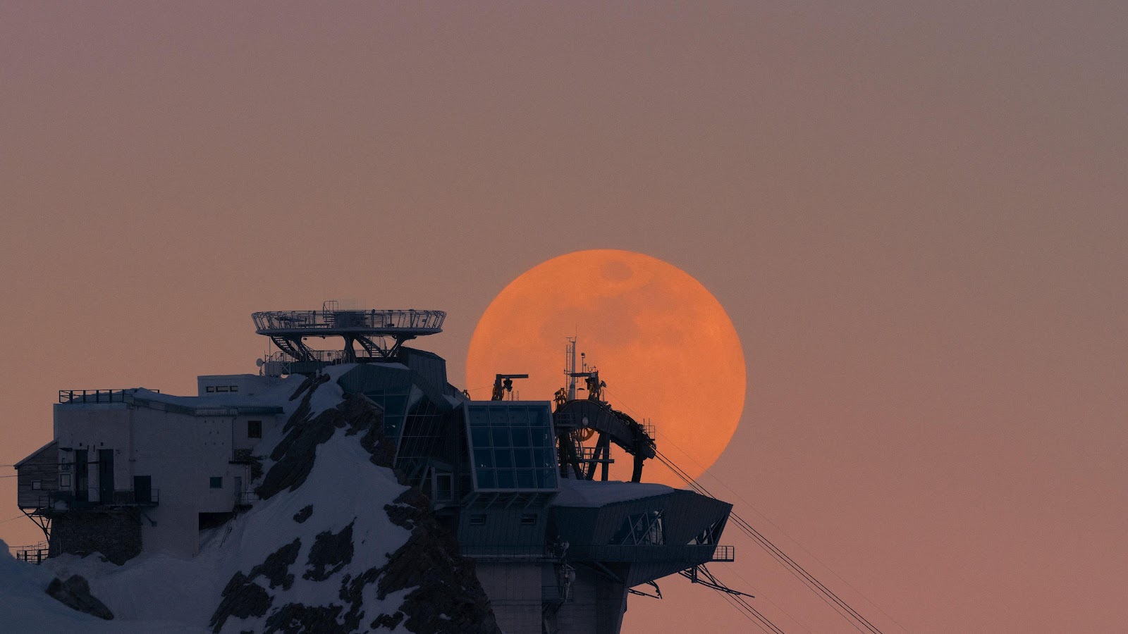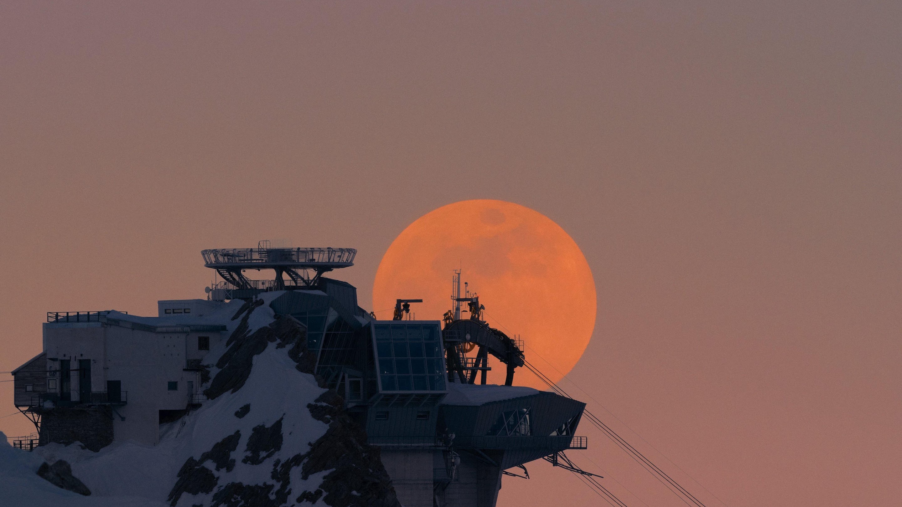 Mountain Peak, Moonrise, Alps, Cable Car 4K Desktop and Mobile Wallpaper Background with a maximum resolution of 4000x3000 px.