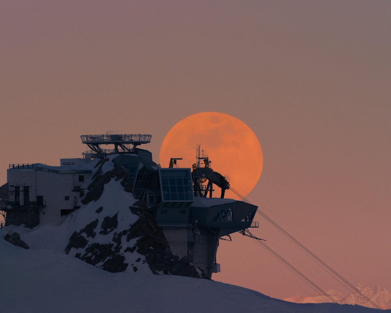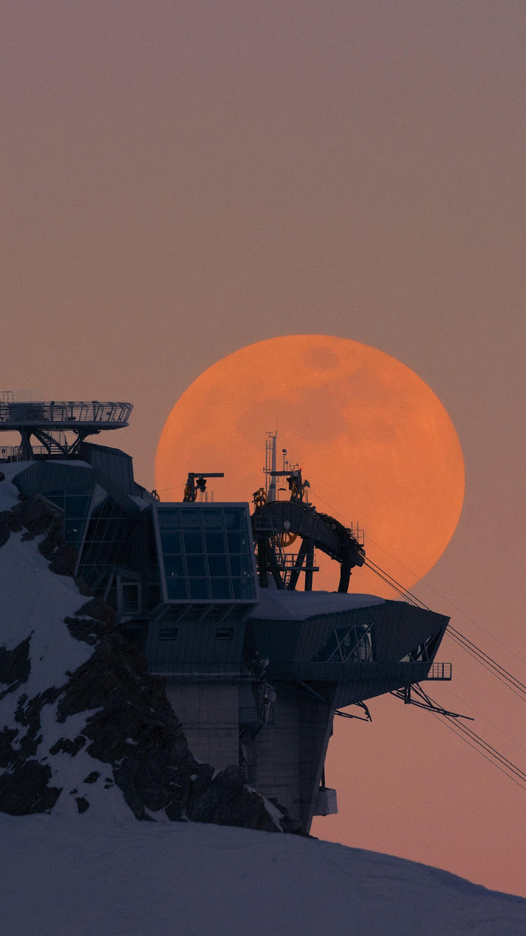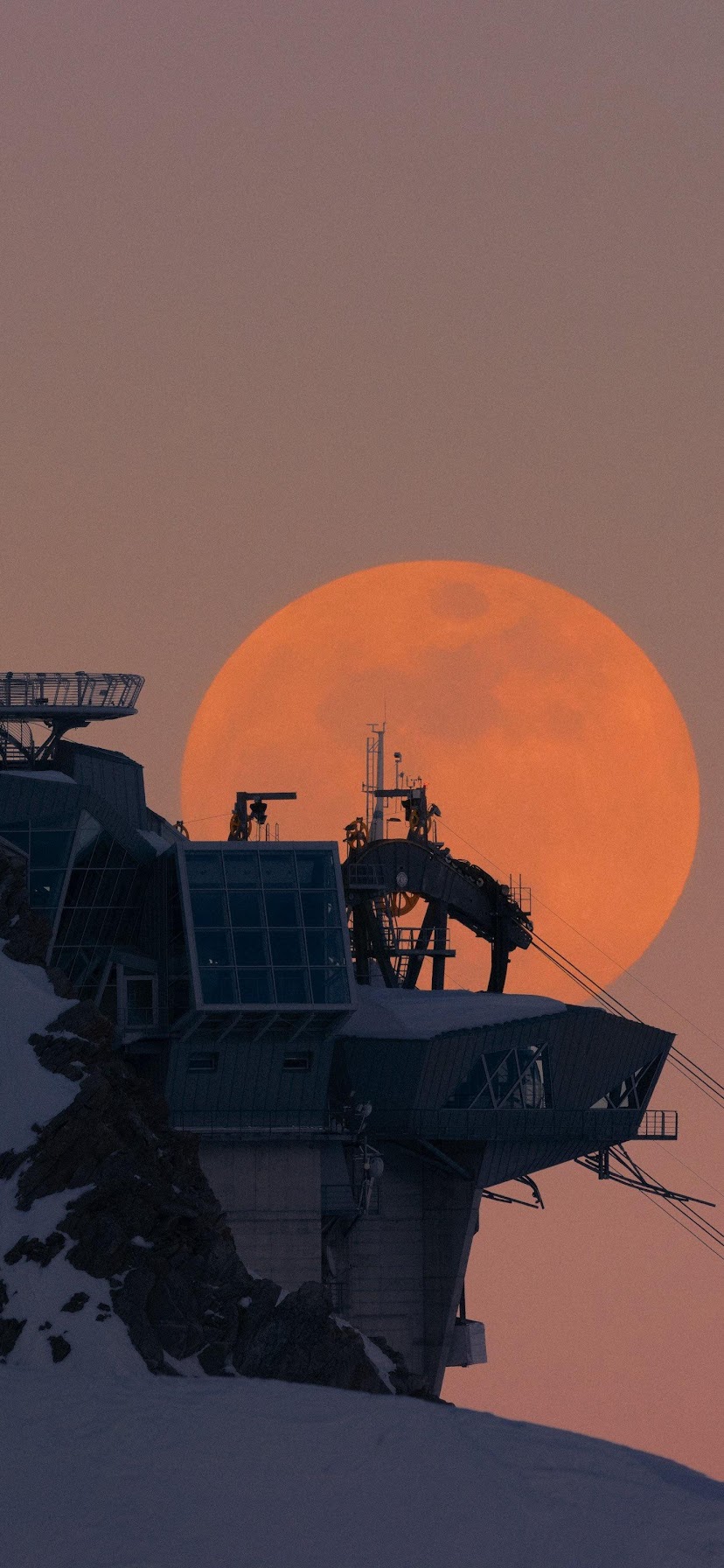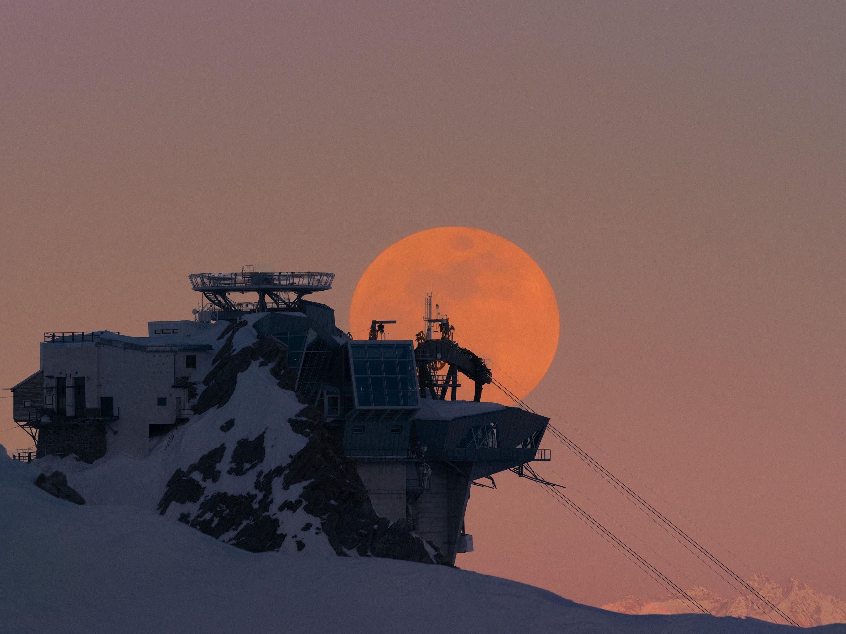 Mountain Peak, Moonrise, Alps, Cable Car 4K Desktop and Mobile Wallpaper Background with a maximum resolution of 4000x3000 px.