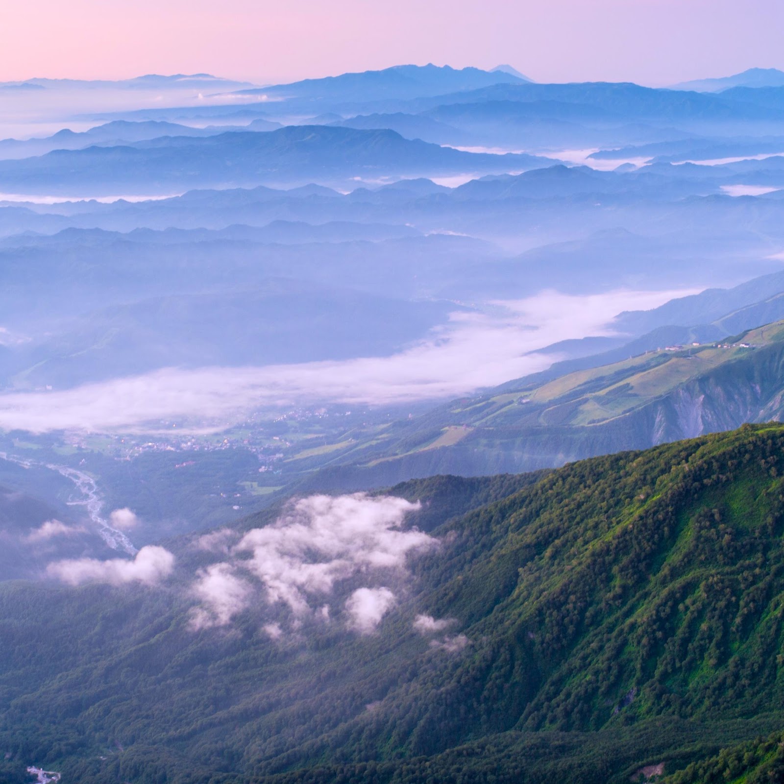 Mountain Range, Scenic Landscape, Fog, Aerial View 4K Desktop Wallpaper