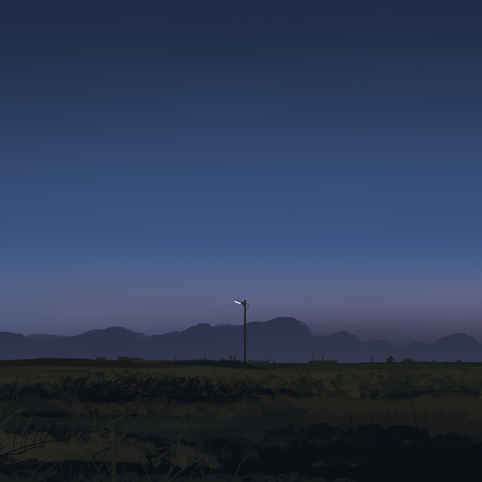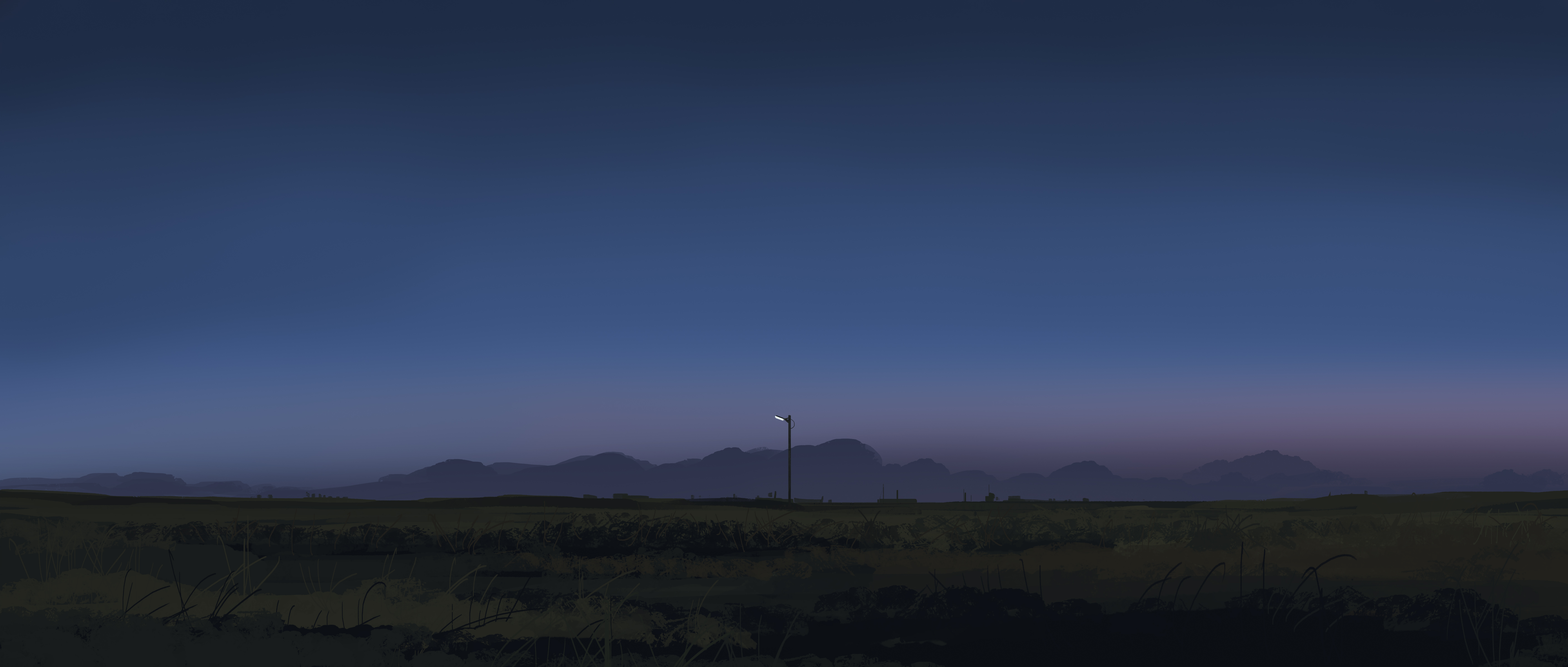 Night Landscape, Field, Mountains, Illustration 4K Ultrawide Desktop and Mobile Wallpaper Background with a maximum resolution of 5640x2400 px.