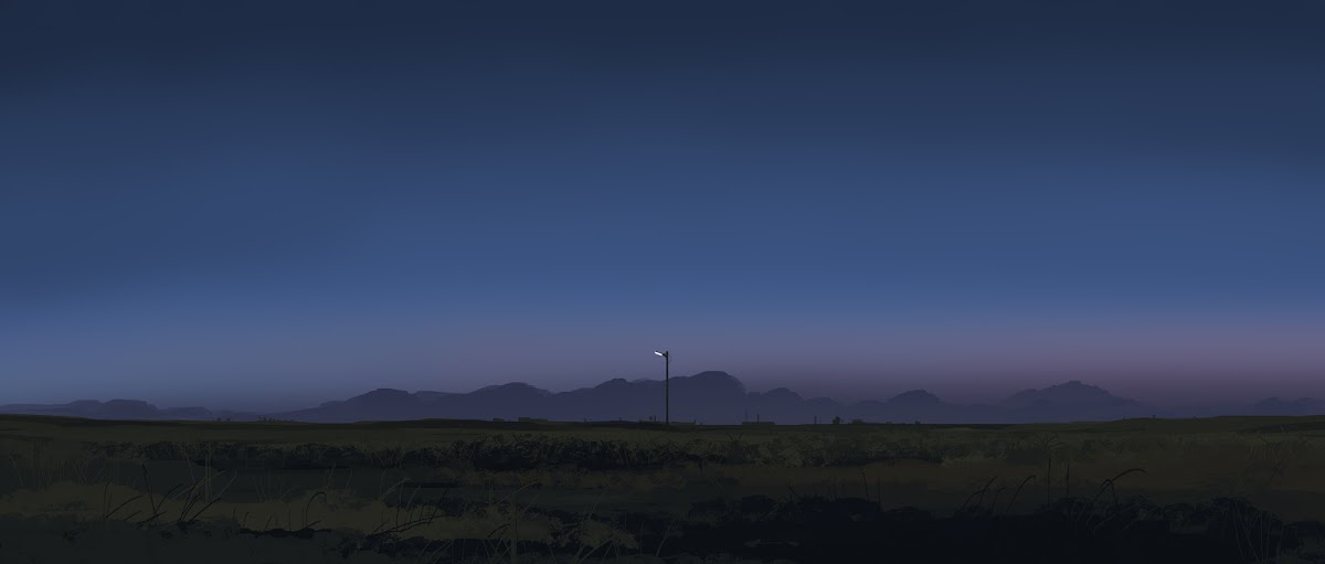 Night Landscape, Field, Mountains, Illustration 4K Ultrawide Desktop Wallpaper
