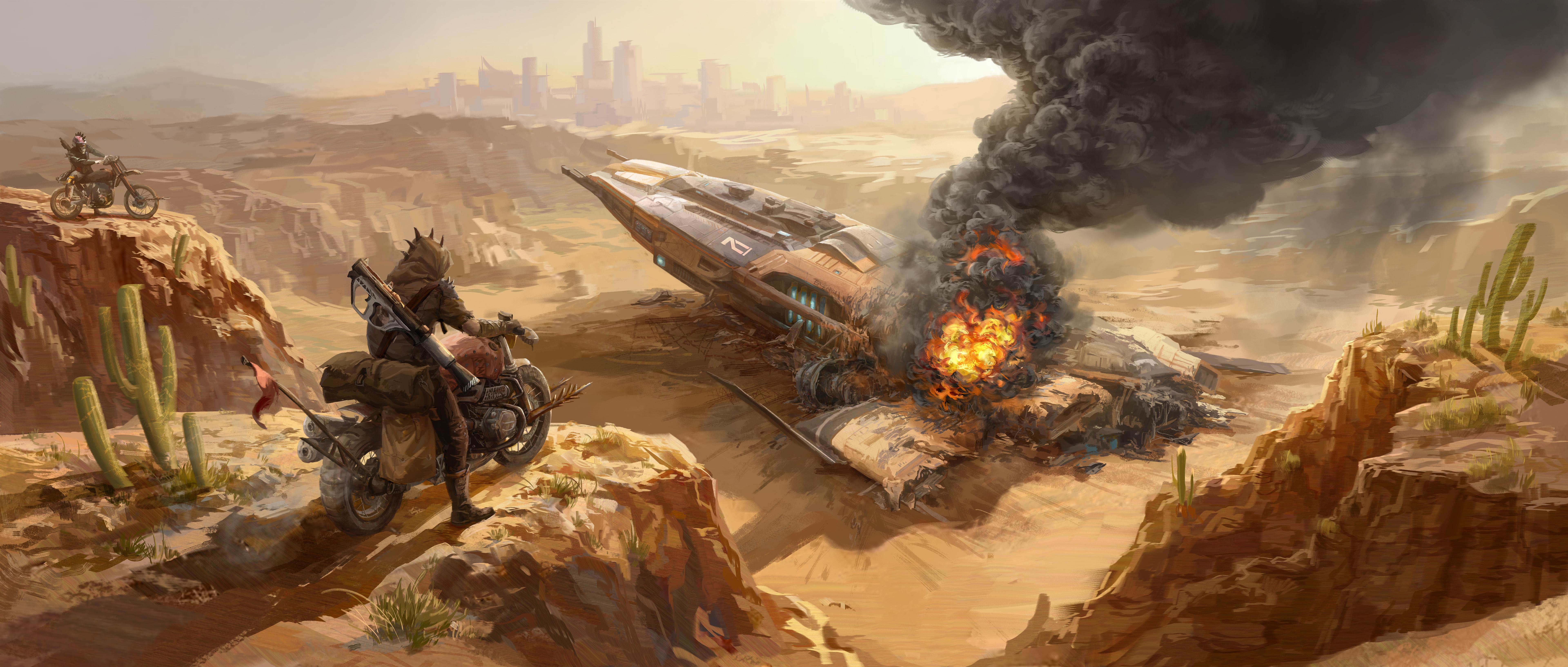Post-Apocalyptic, Desert, Sci-Fi, Wreckage 5K Ultrawide Desktop Wallpaper