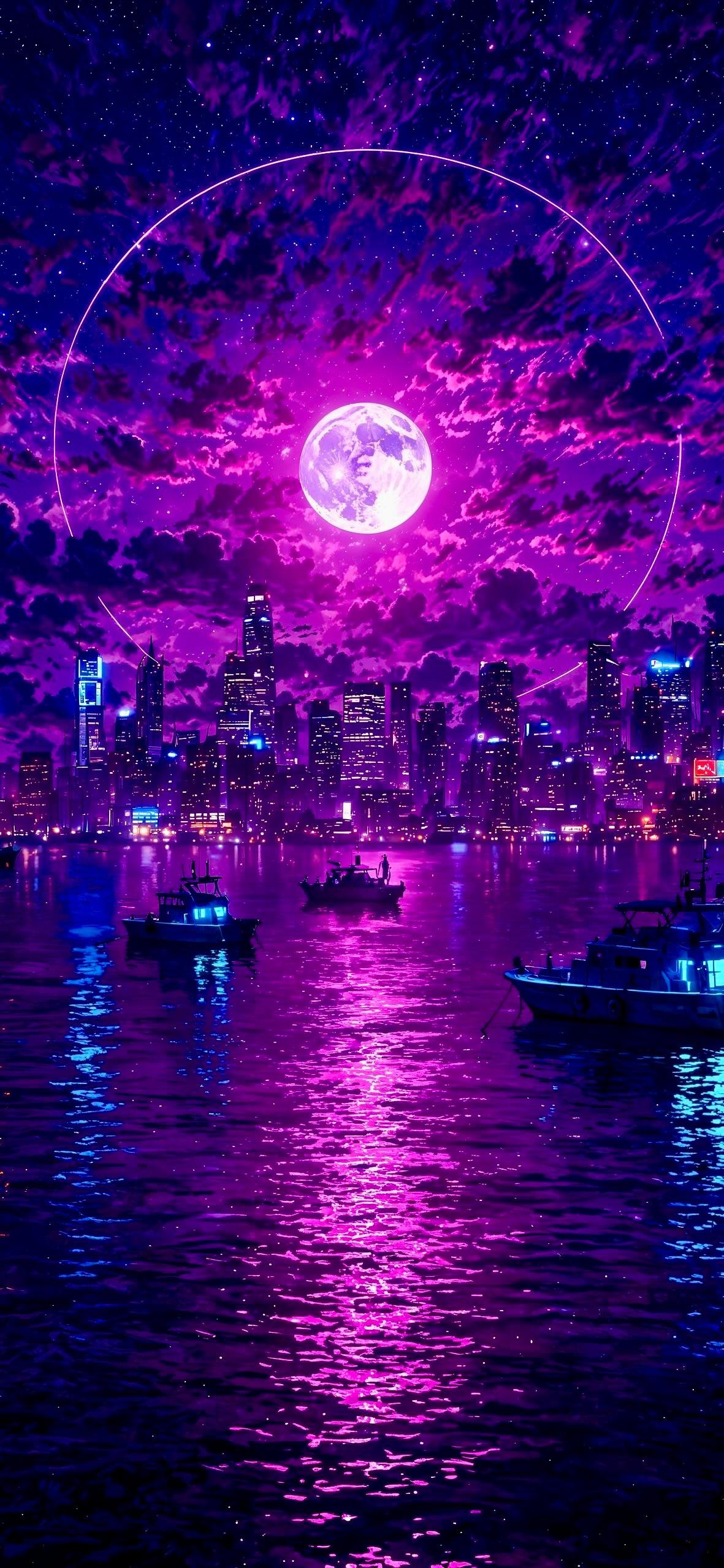 Purple Aesthetic, Cityscape, Night Photography, Neon Lights Full HD iPhone Phone Wallpaper