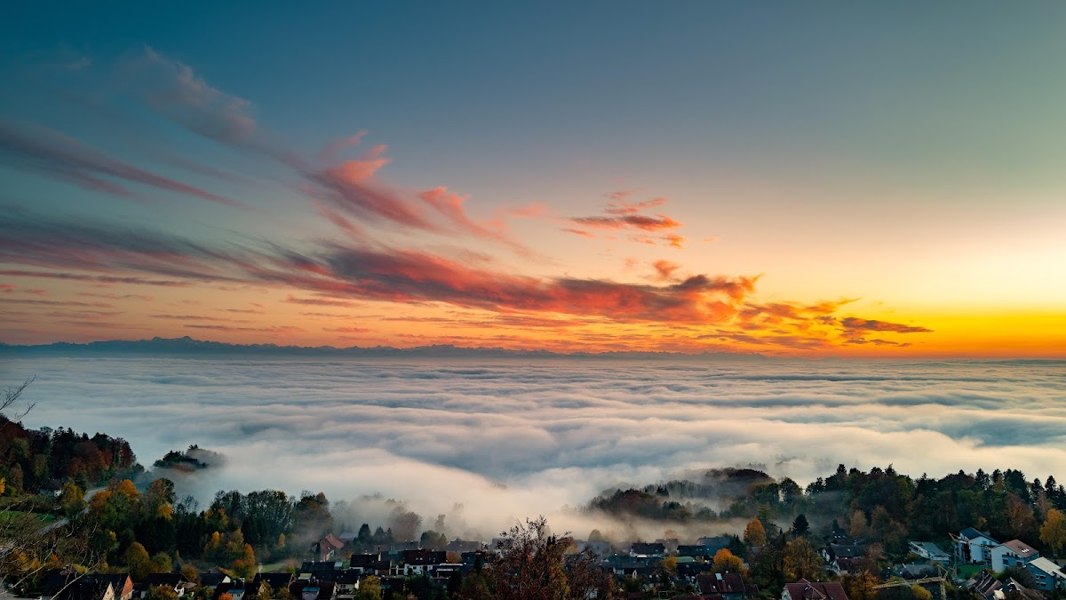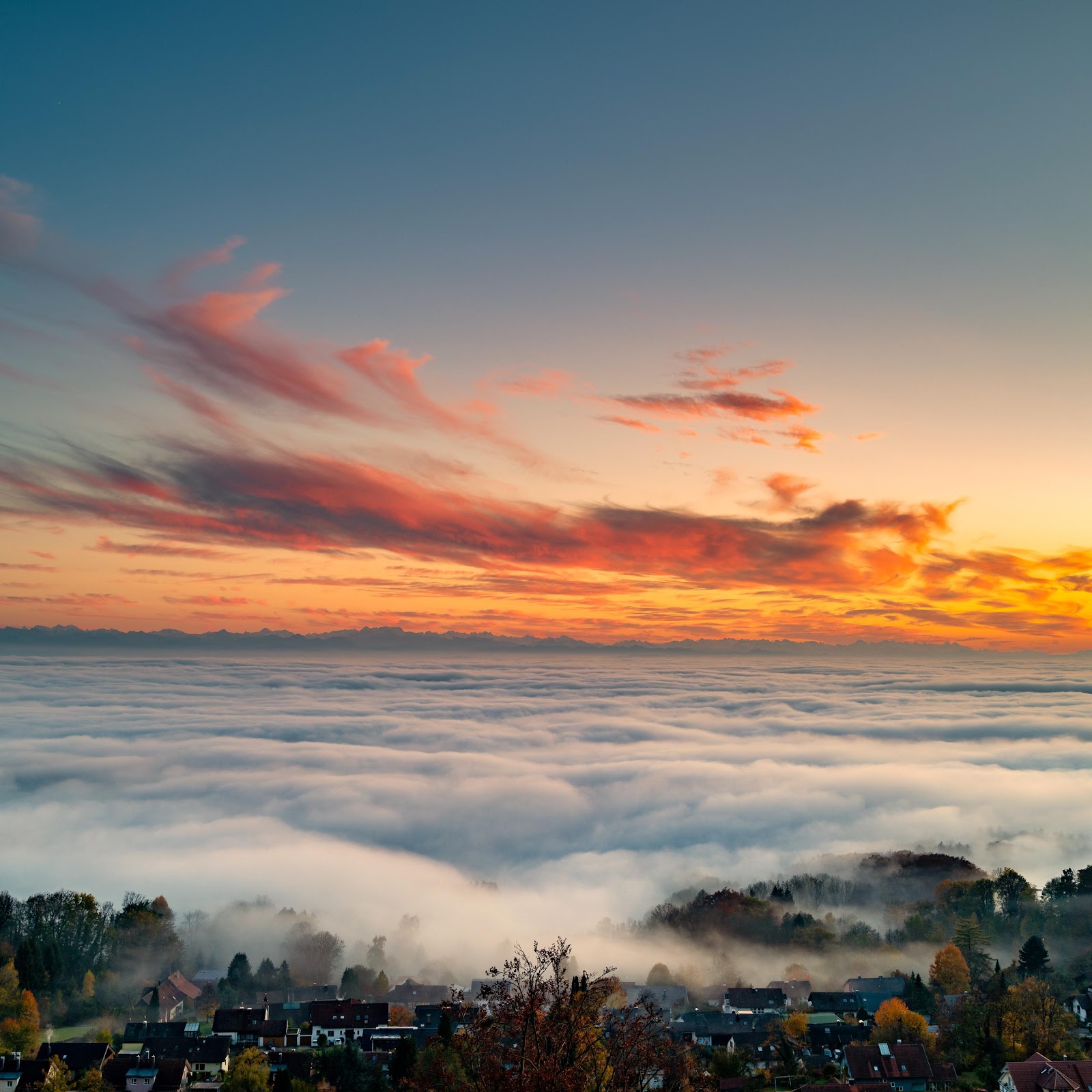 Sea Of Fog, Sunset, Landscape, Aerial View 5K Desktop Wallpaper