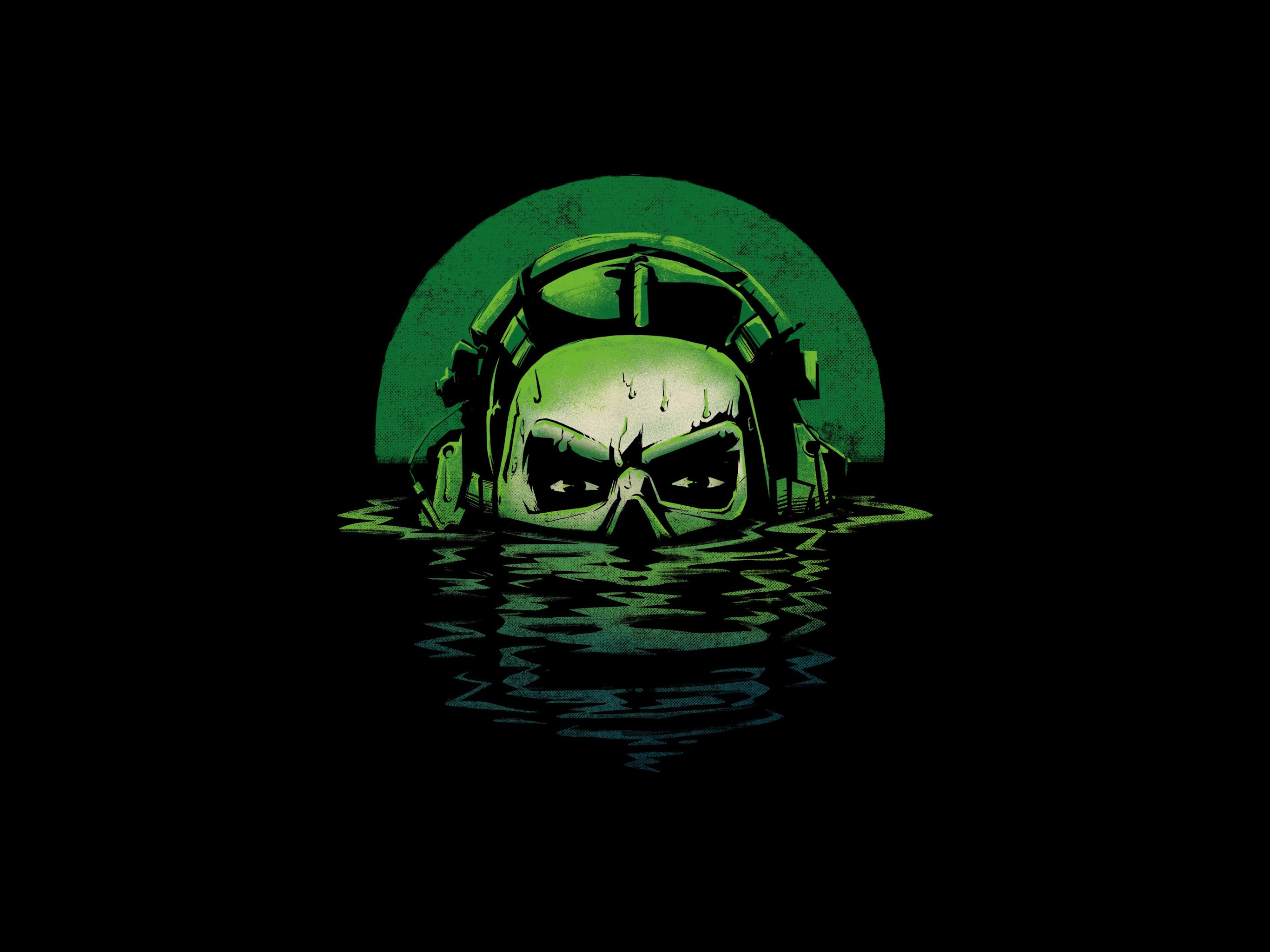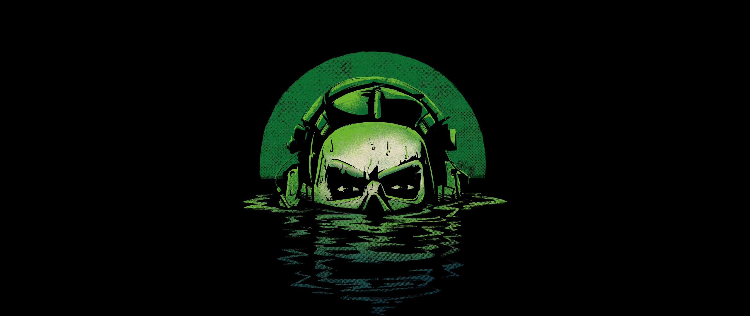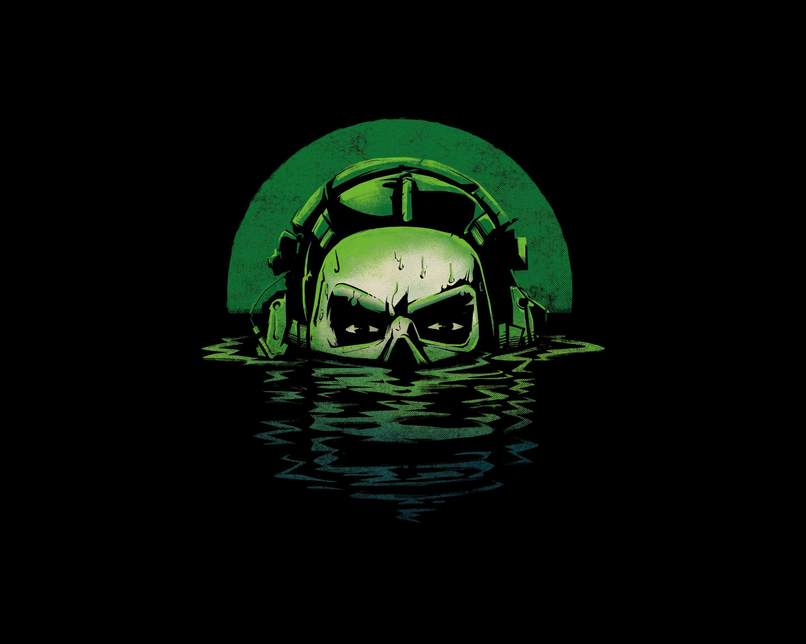 Skull, Green, Water, Military 5K Desktop and Mobile Wallpaper Background with a maximum resolution of 5120x2880 px.