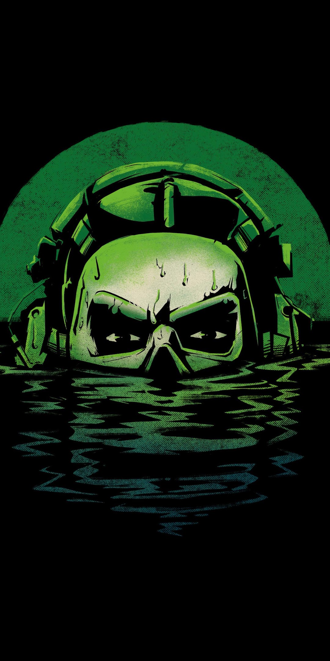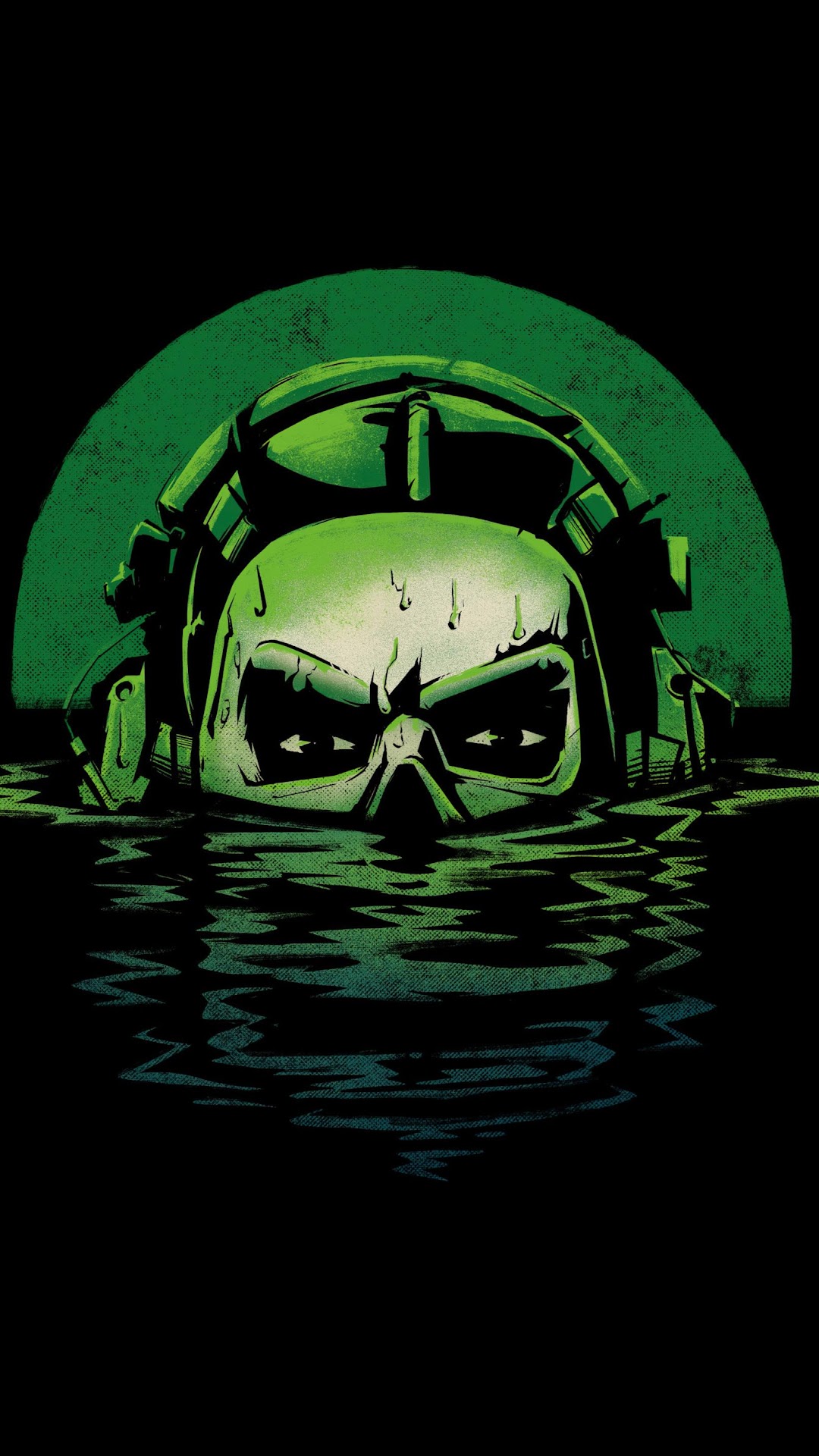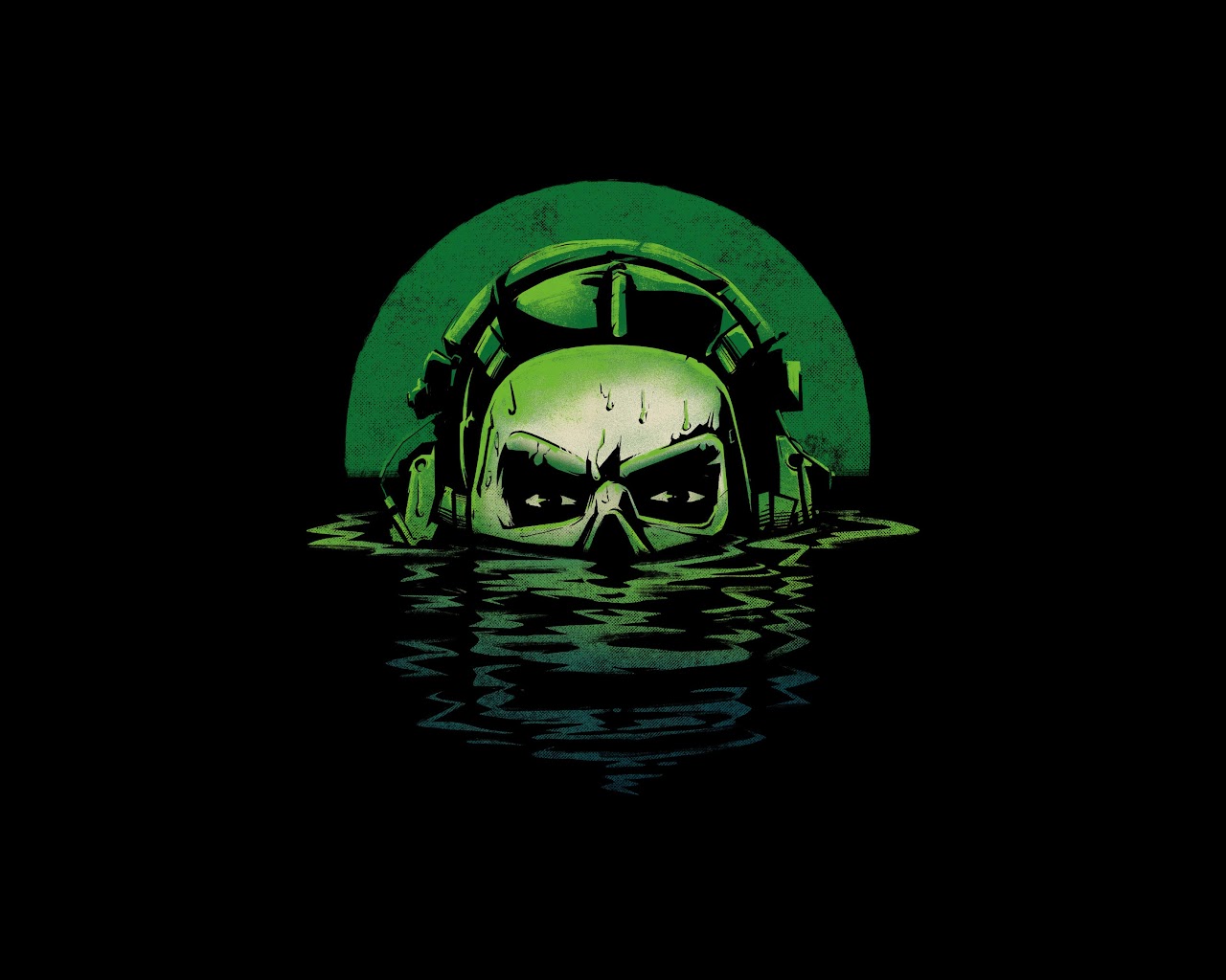Skull, Green, Water, Military 5K Desktop and Mobile Wallpaper Background with a maximum resolution of 5120x2880 px.