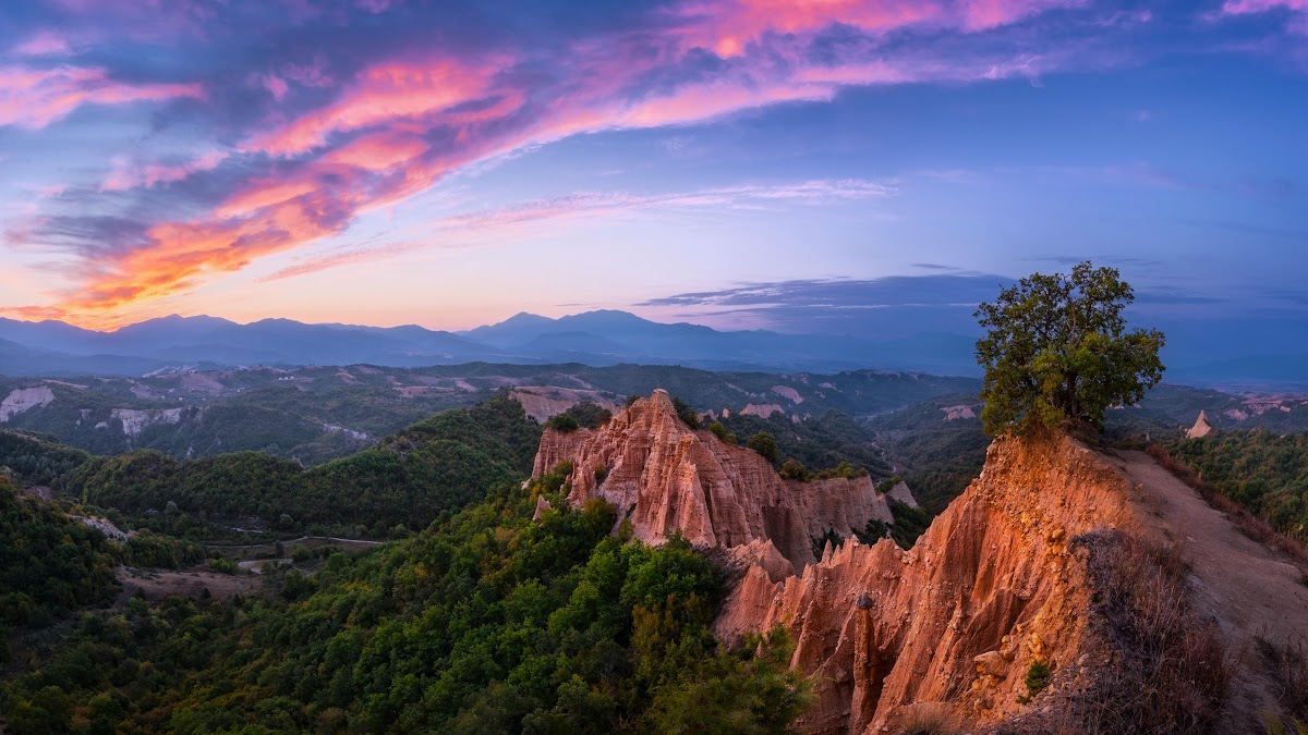 Sunset Landscape, Sand Pyramids, Melnik Bulgaria, Geological Formation 4K Desktop Wallpaper