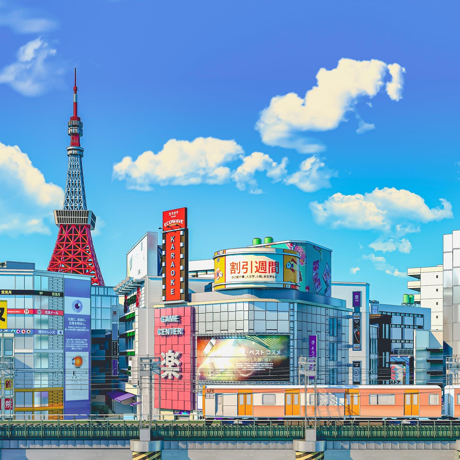 Tokyo, Anime Cityscape, Japan, Urban Scene 4K Desktop and Mobile Wallpaper Background with a maximum resolution of 3840x2160 px.