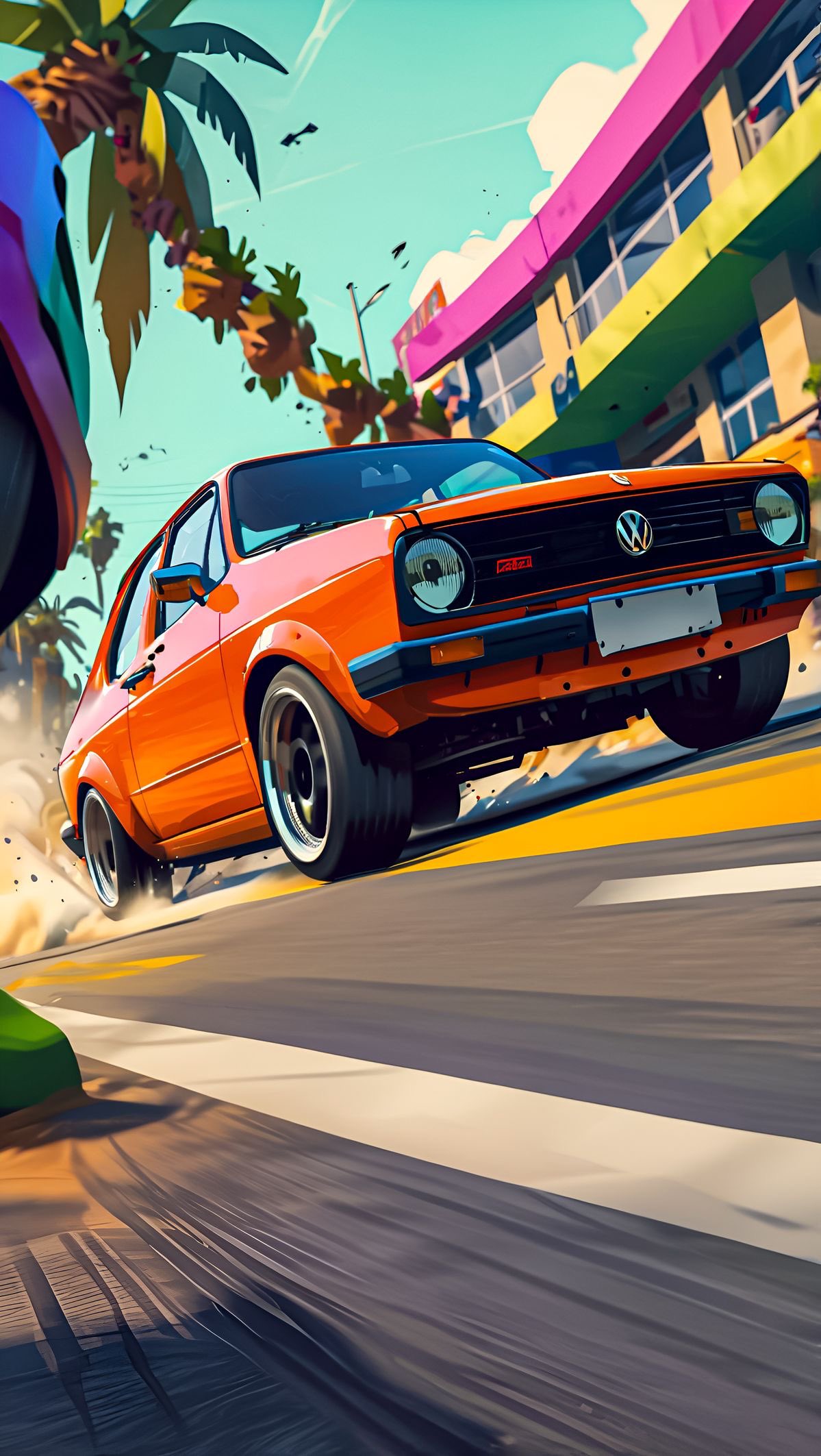 Volkswagen Golf, Classic Car, Automotive, Artwork Full HD iPhone Phone Wallpaper