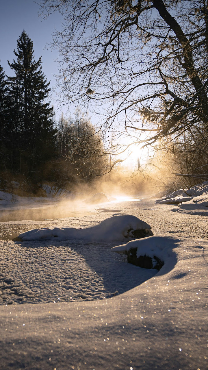 Winter Landscape, Frozen River, Misty Scenery, Cold Weather 4K Desktop and Mobile Wallpaper Background with a maximum resolution of 4711x3141 px.