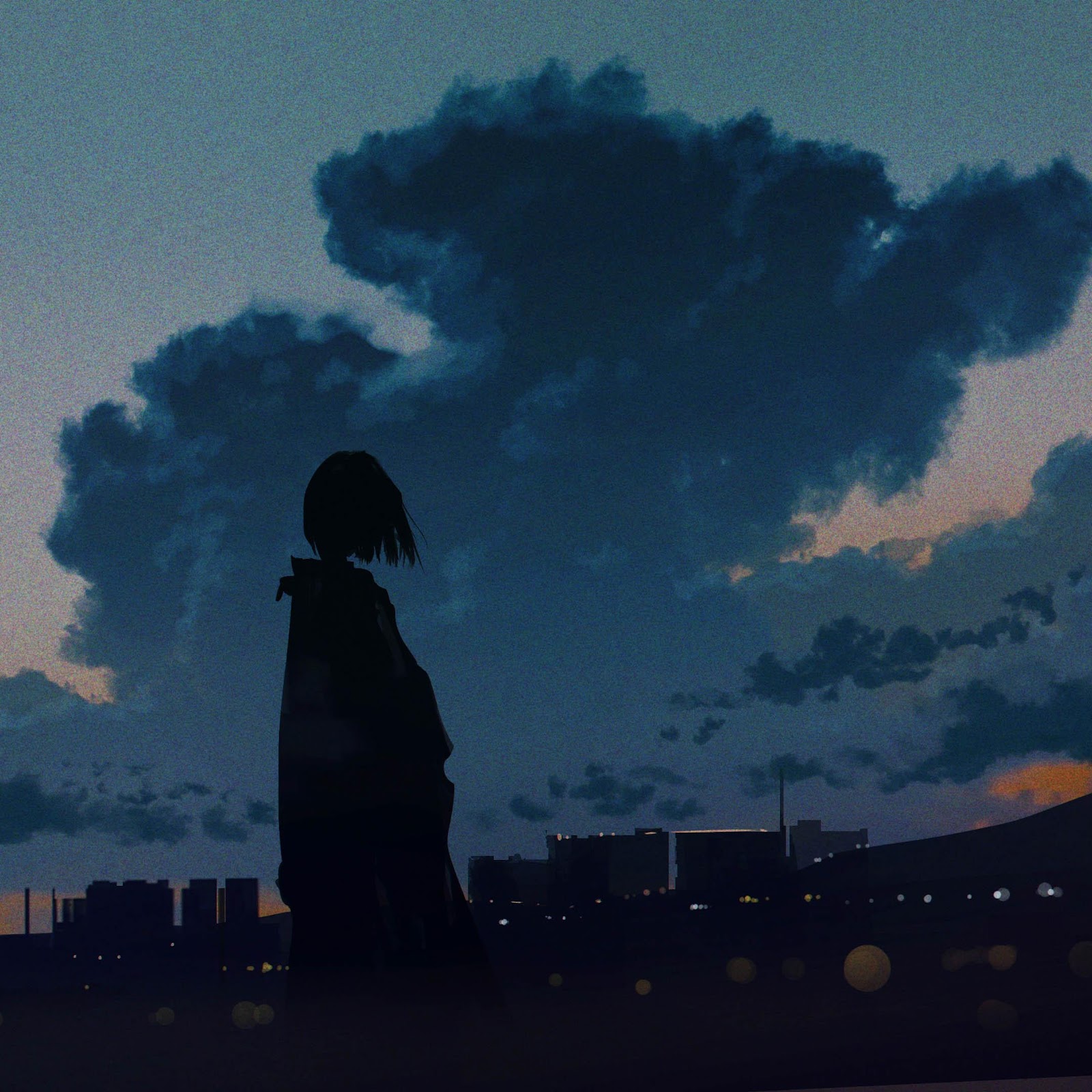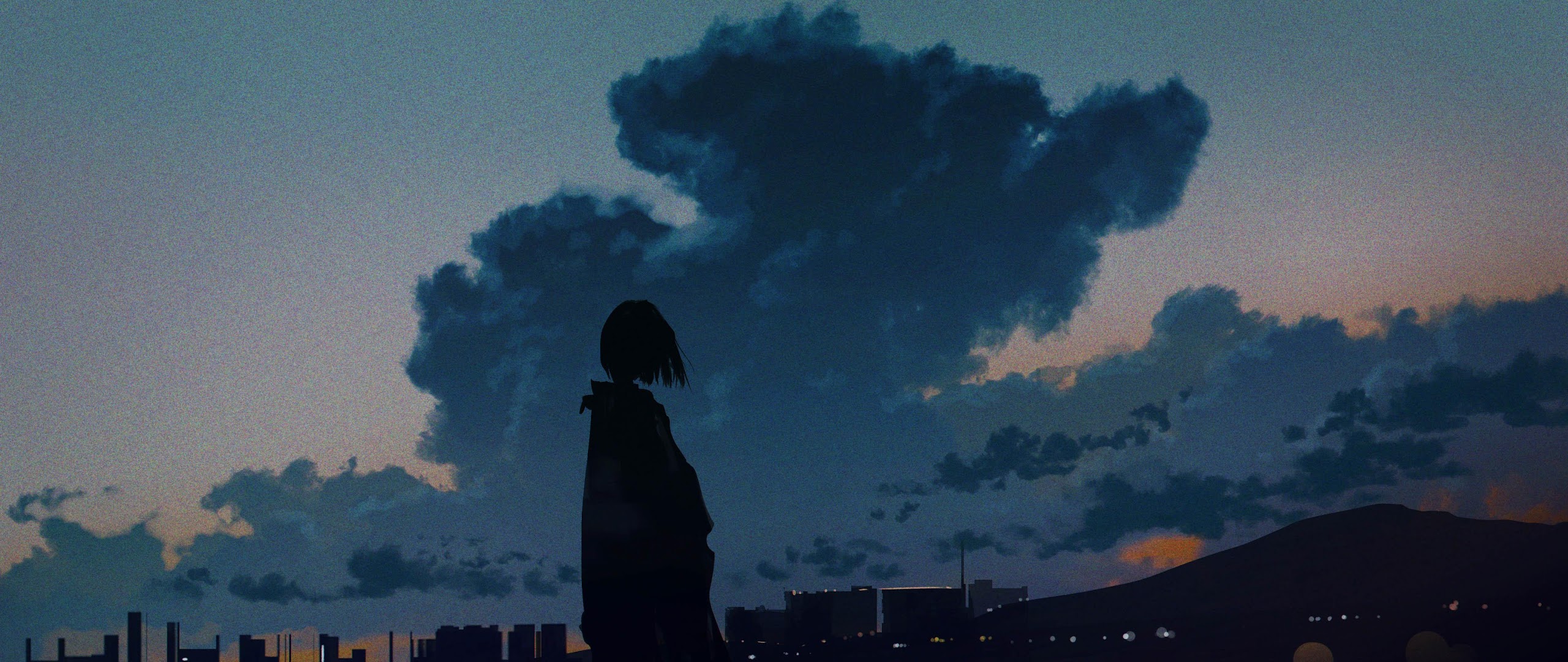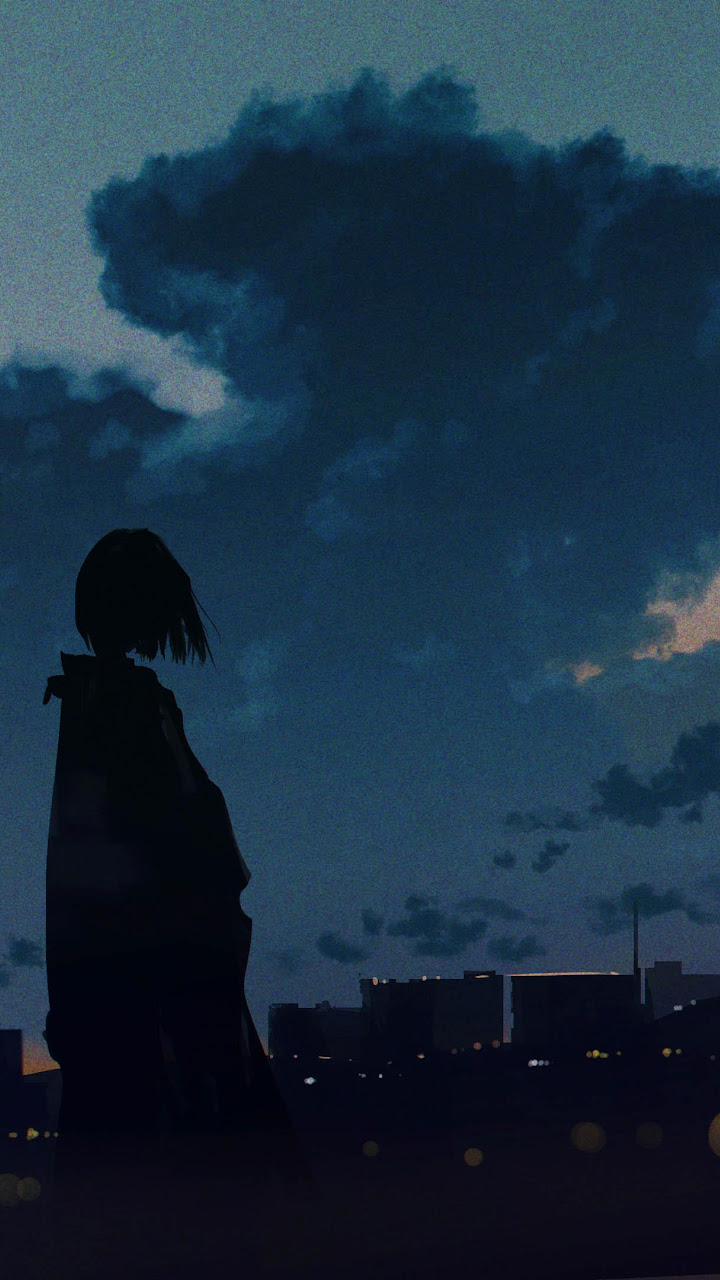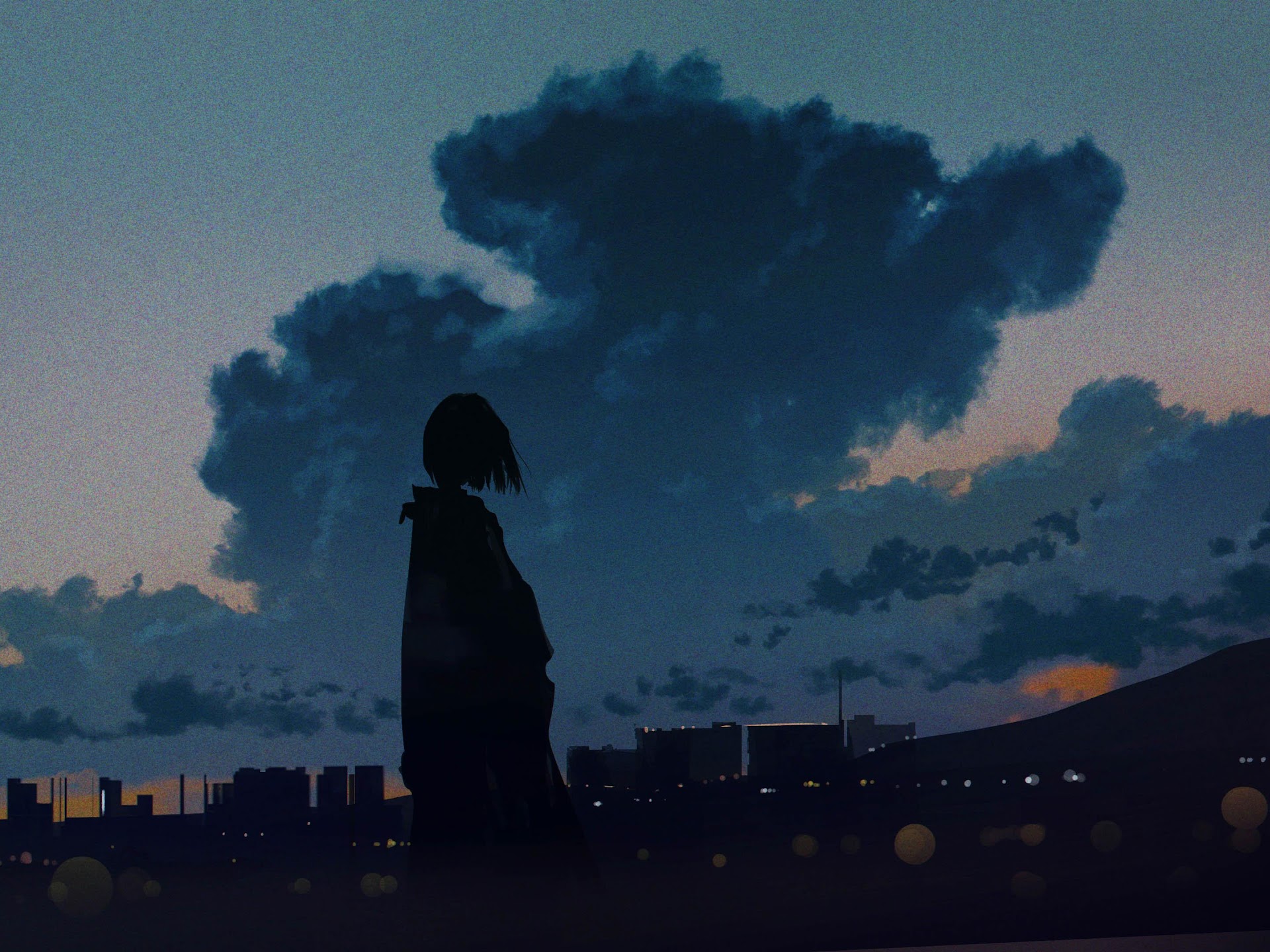 Anime Art, Twilight Sky, Cityscape Silhouette, Moody Aesthetic 4K Desktop Wallpaper