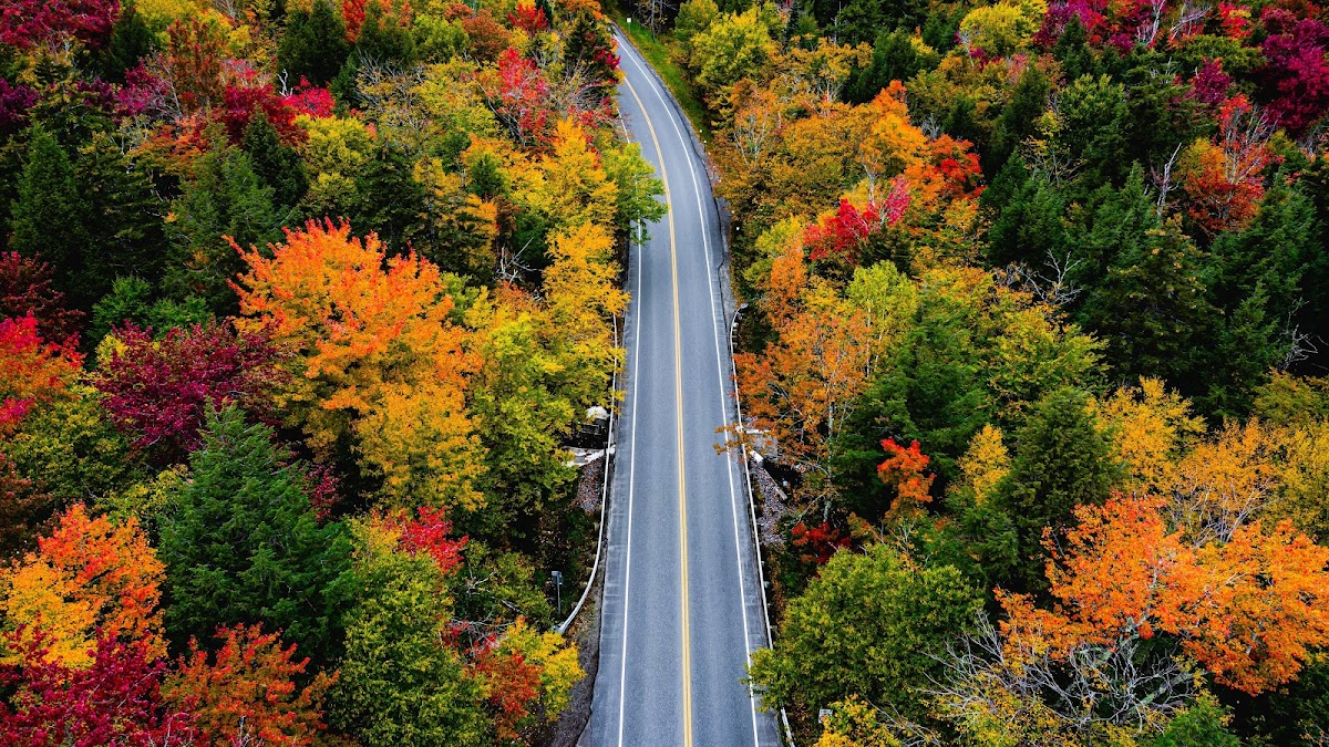 Autumn Foliage, Scenic Drive, Fall Colors, Forest Landscape 5K Desktop Wallpaper