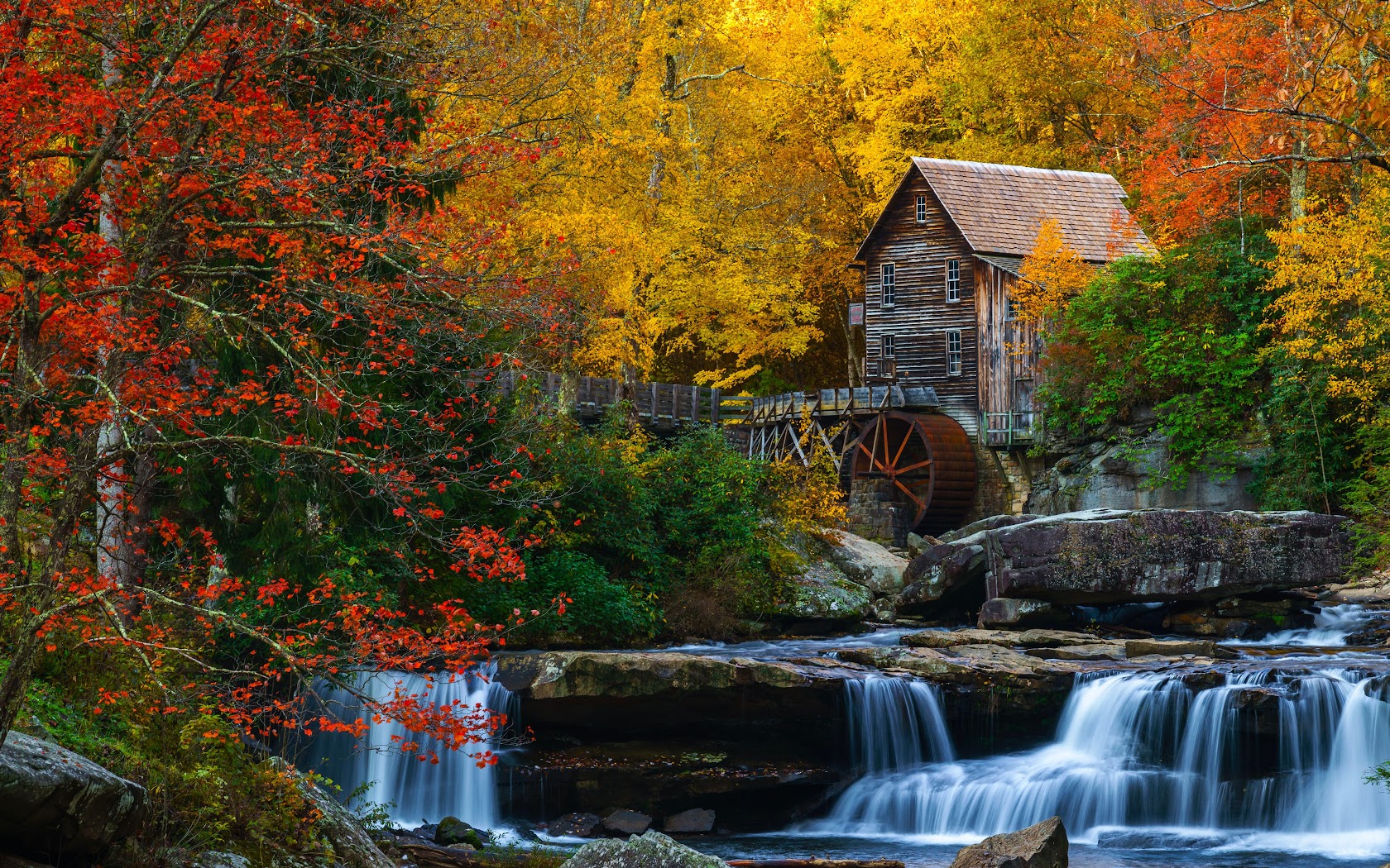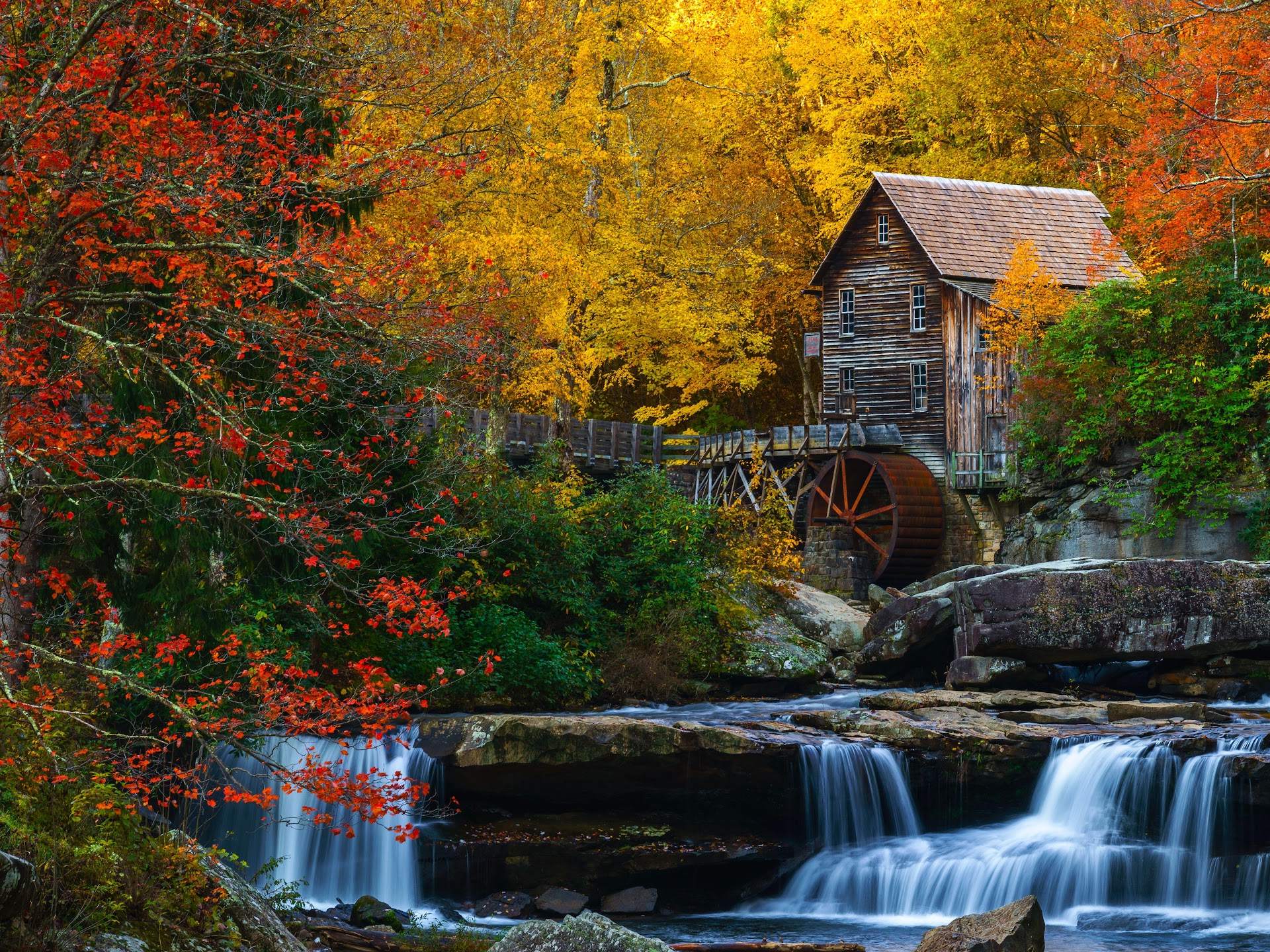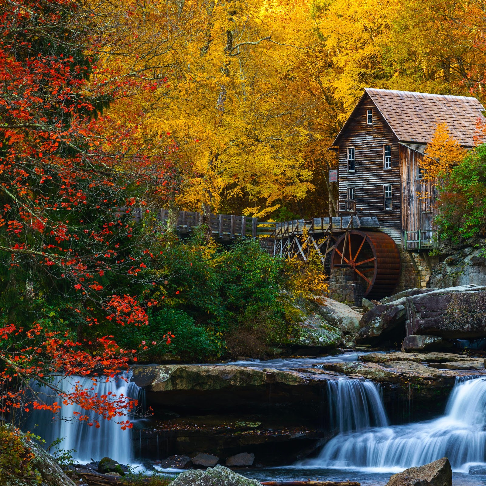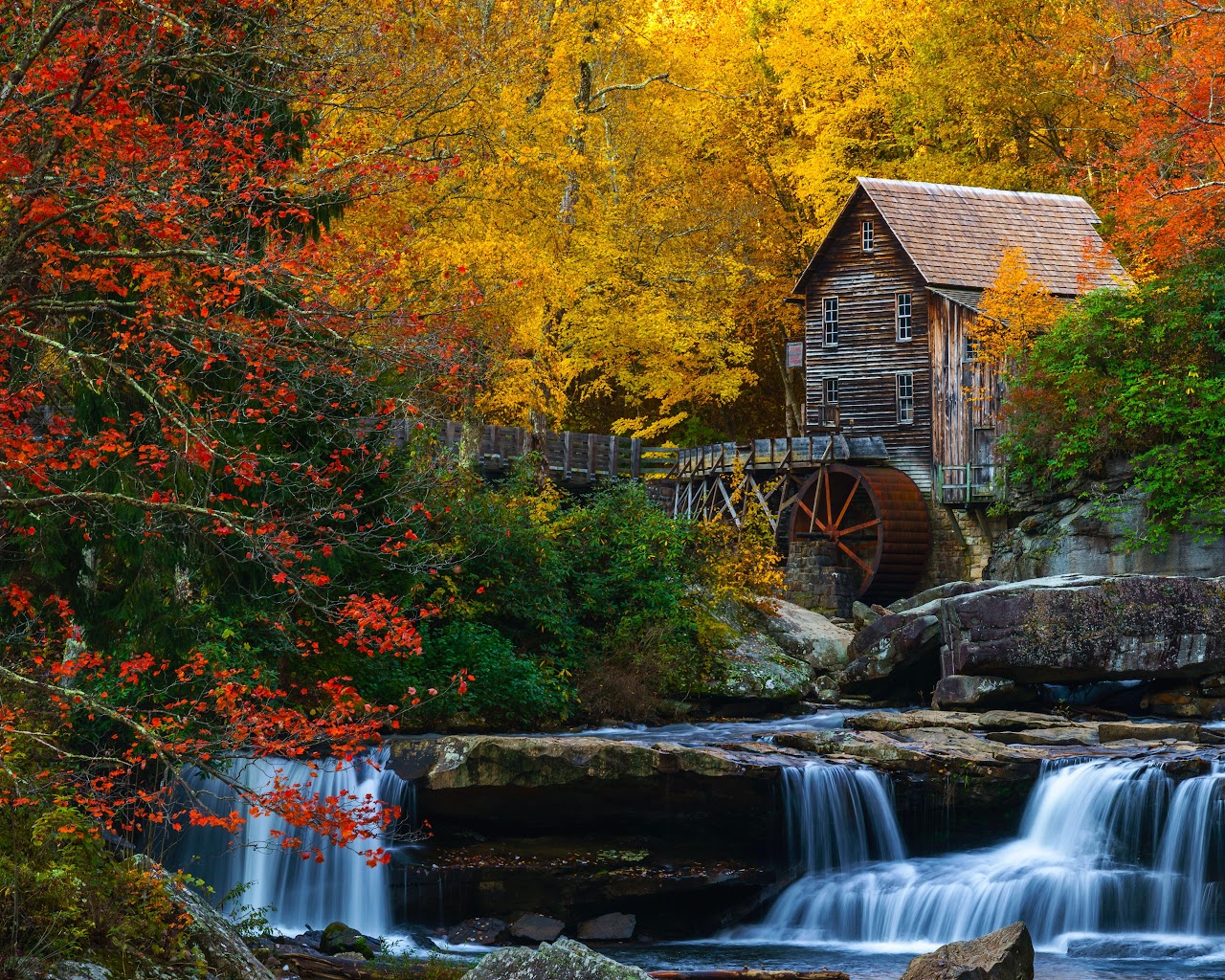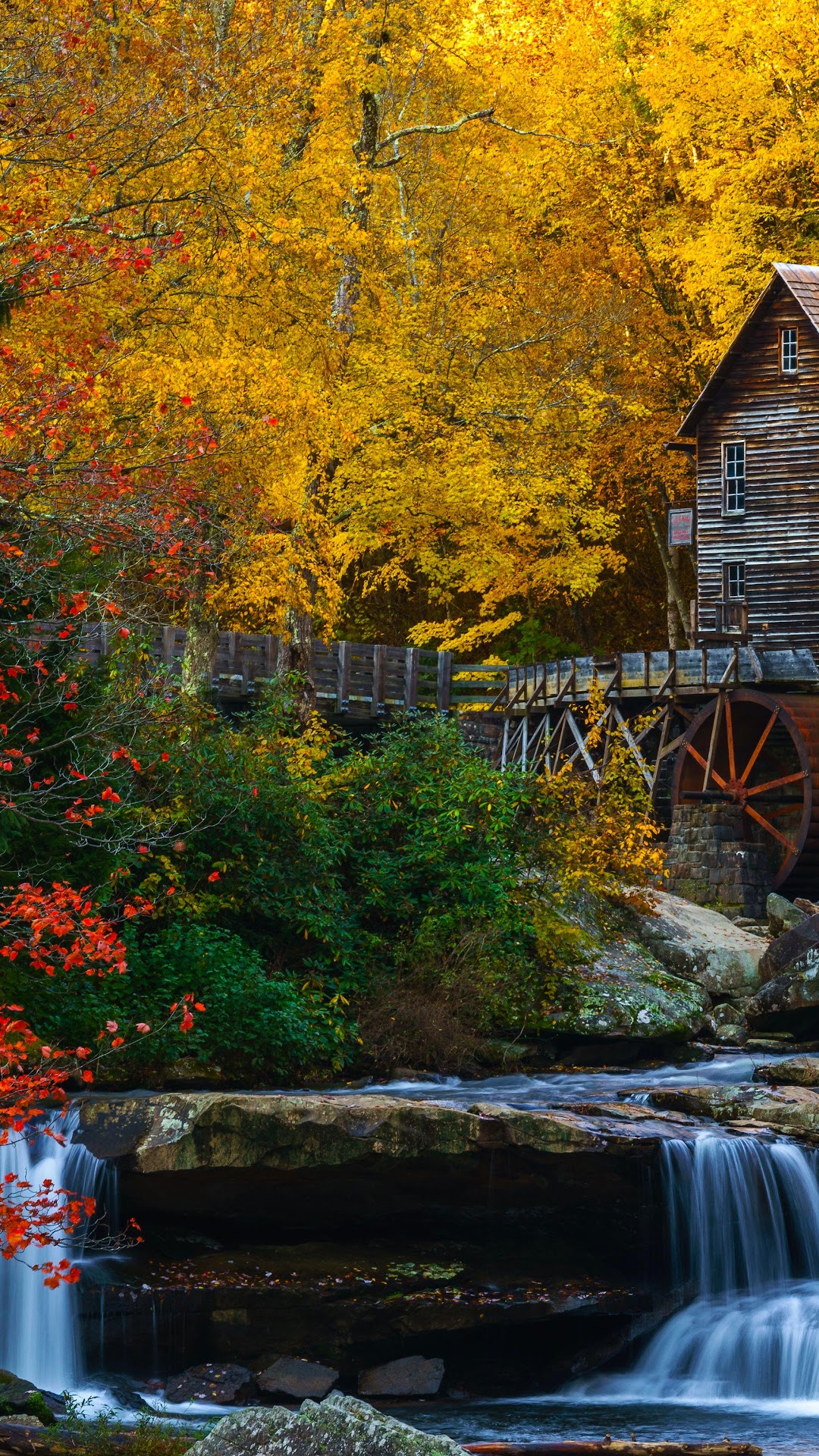 Autumn Scenery, Waterfall, Grist Mill, Glade Creek 5K Desktop Wallpaper