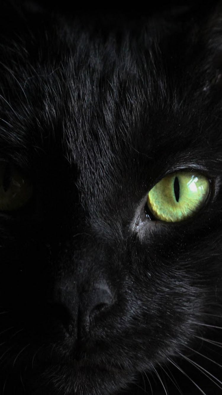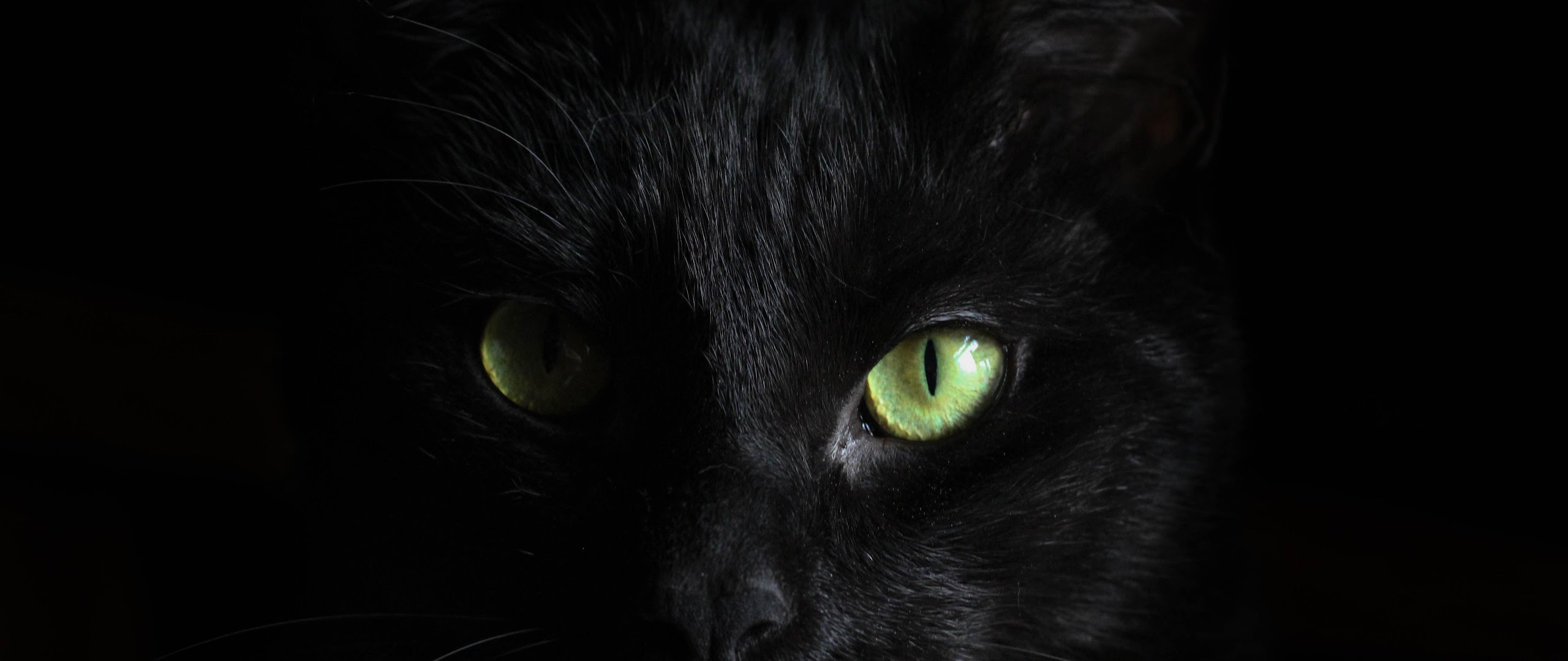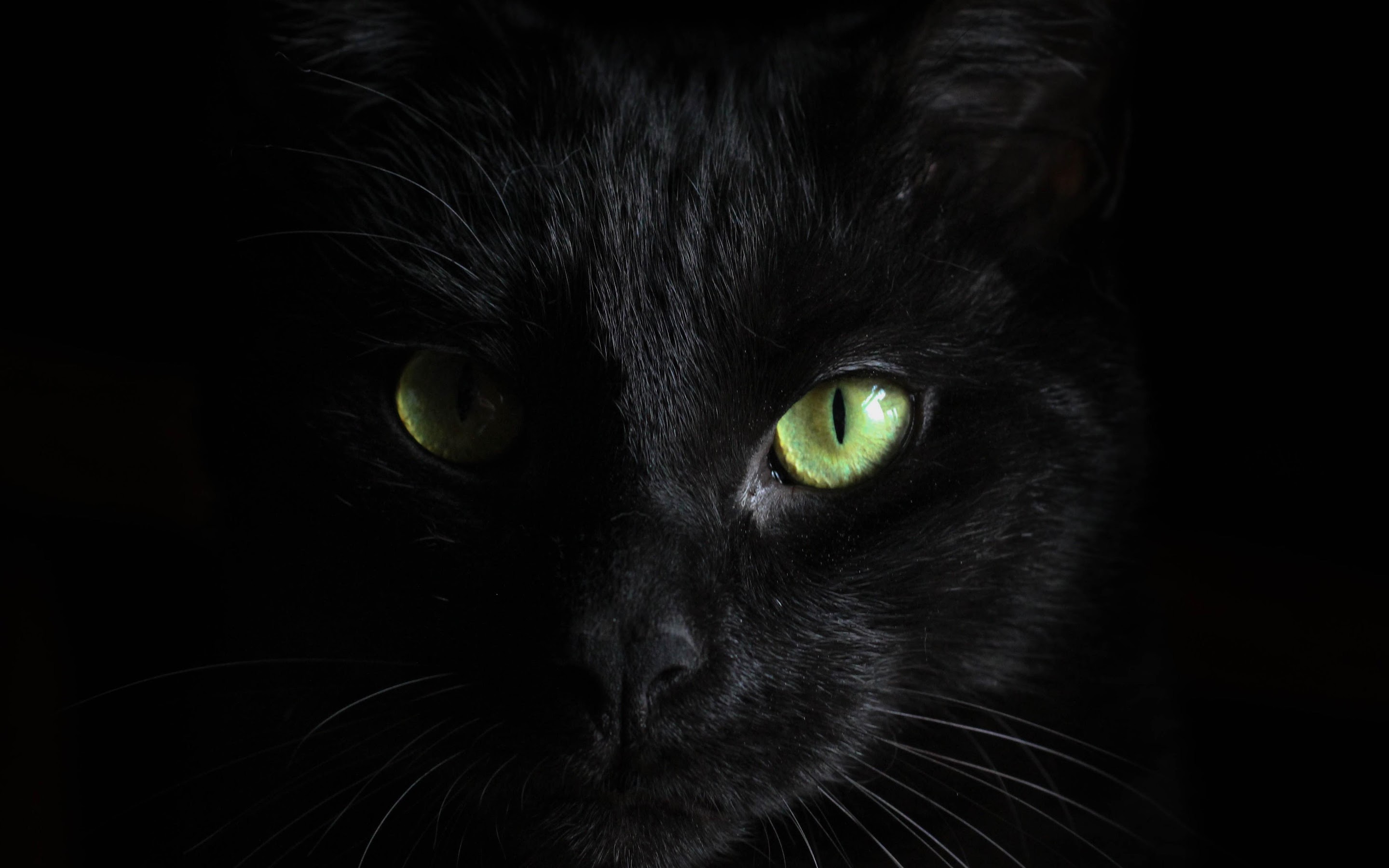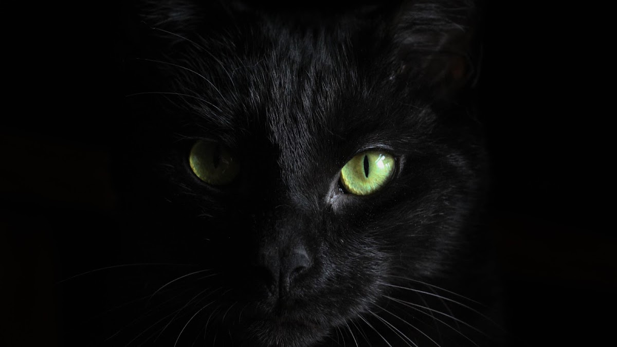 Black Cat, Feline, Green Eyes, Dark Animal 5K Desktop and Mobile Wallpaper Background with a maximum resolution of 5120x2880 px.