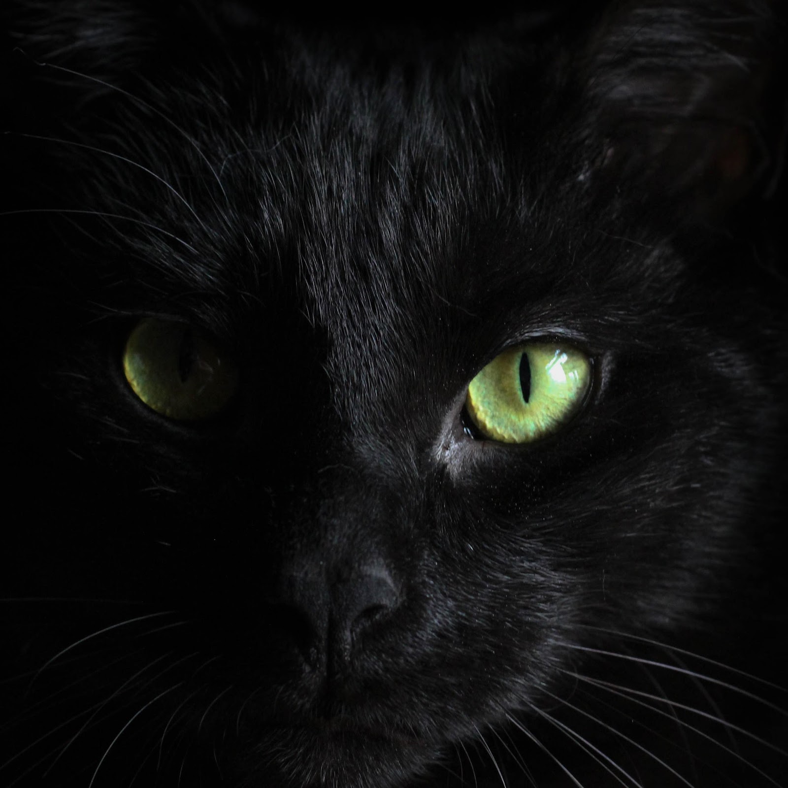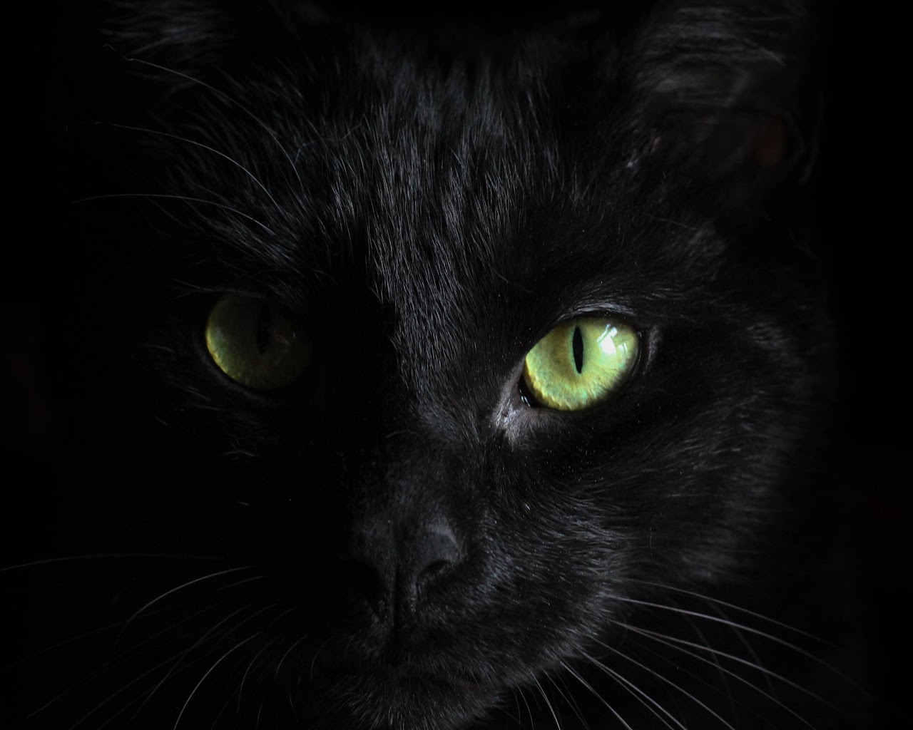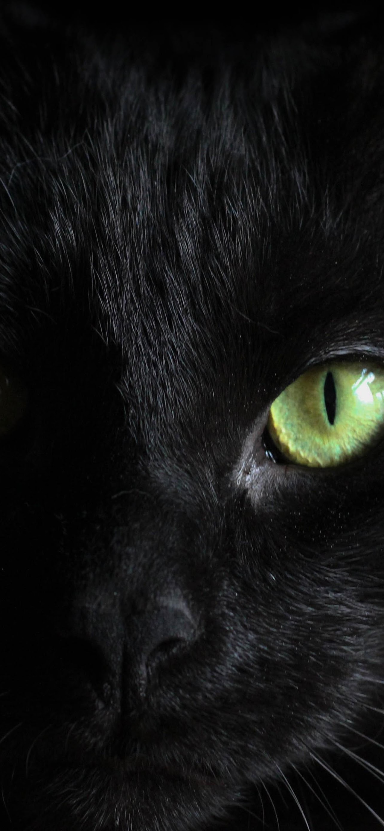 Black Cat, Feline, Green Eyes, Dark Animal 5K Desktop and Mobile Wallpaper Background with a maximum resolution of 5120x2880 px.
