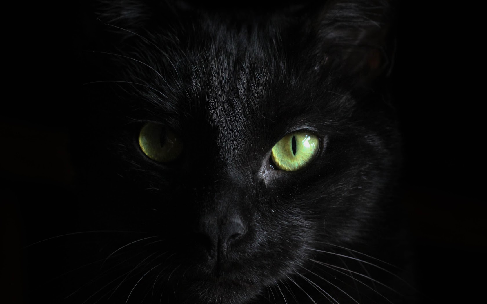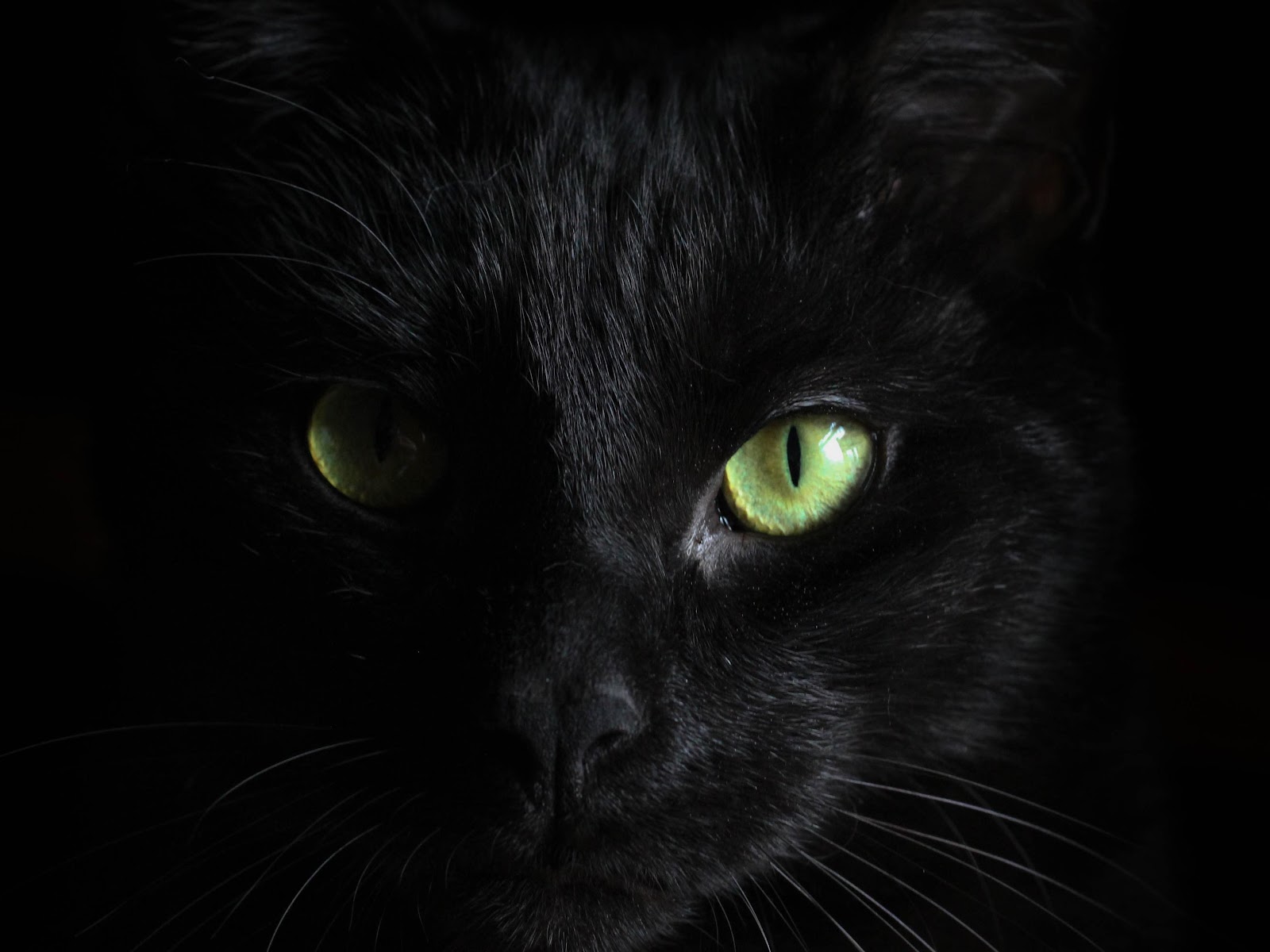 Black Cat, Feline, Green Eyes, Dark Animal 5K Desktop Wallpaper