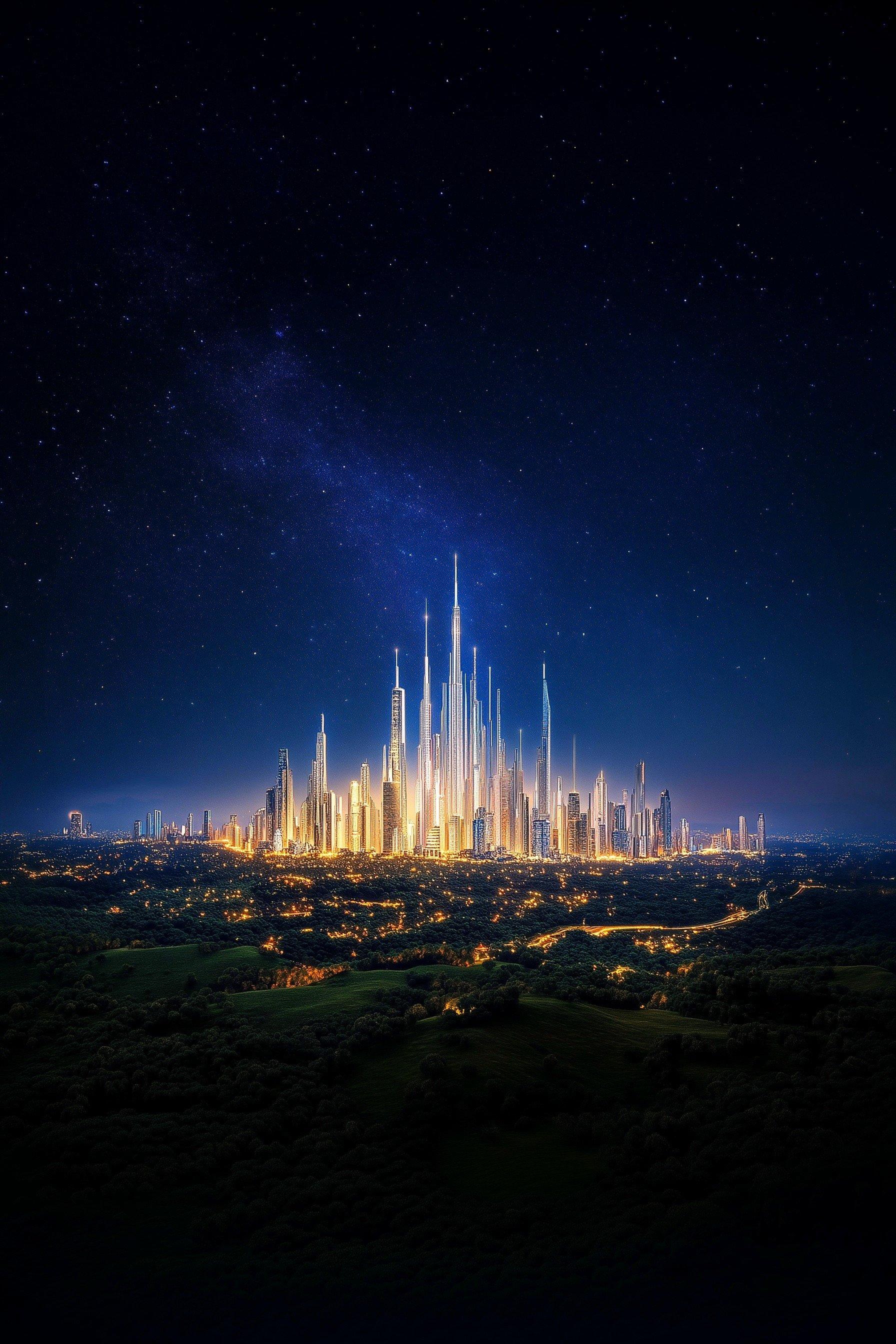 Cityscape, Night, Skyline, Futuristic 2K iPhone Phone Wallpaper