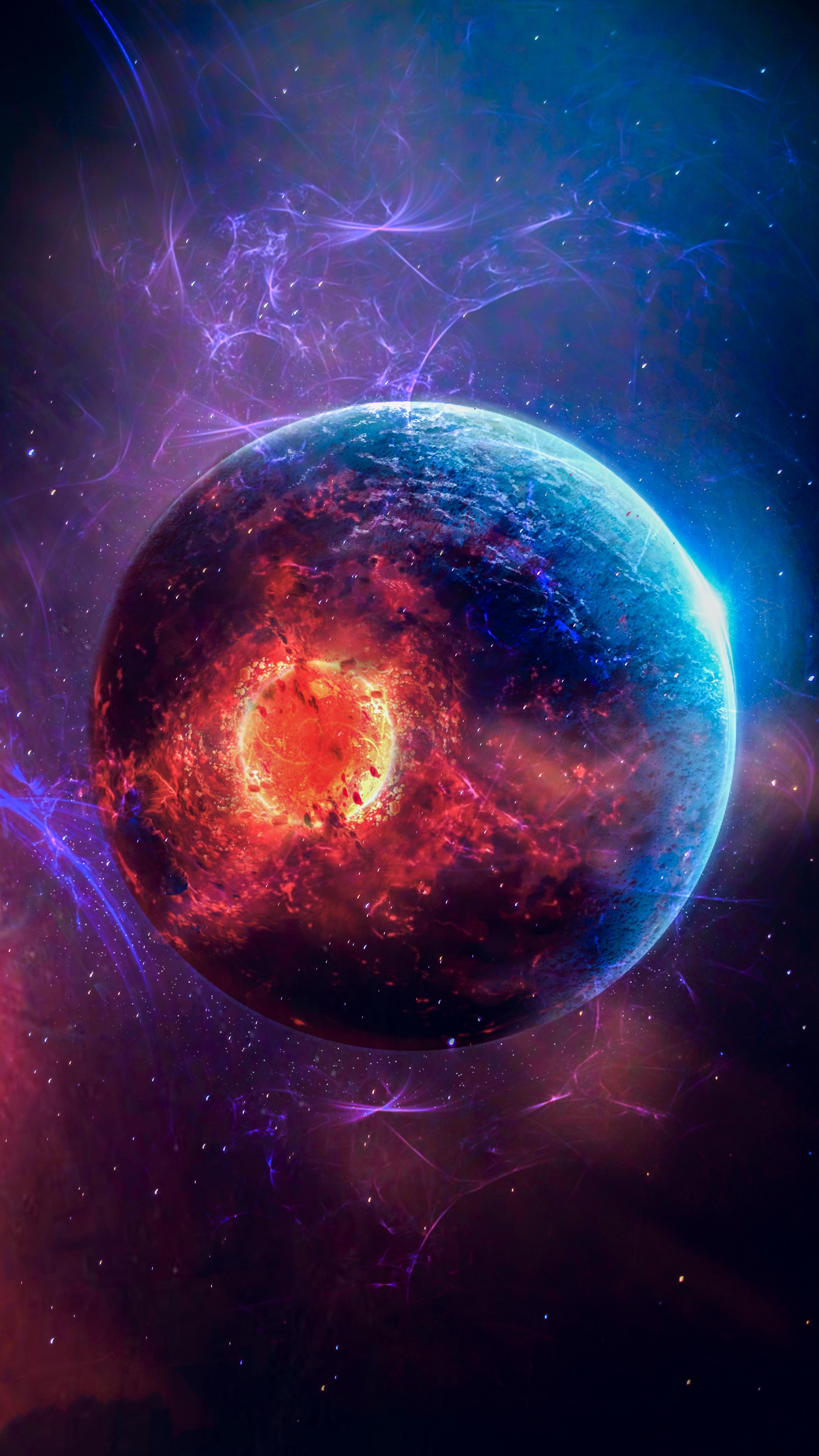 Cosmic Planet Explosion Digital Art - Digital Space Art 4K iPhone Wallpaper (2678x4761)