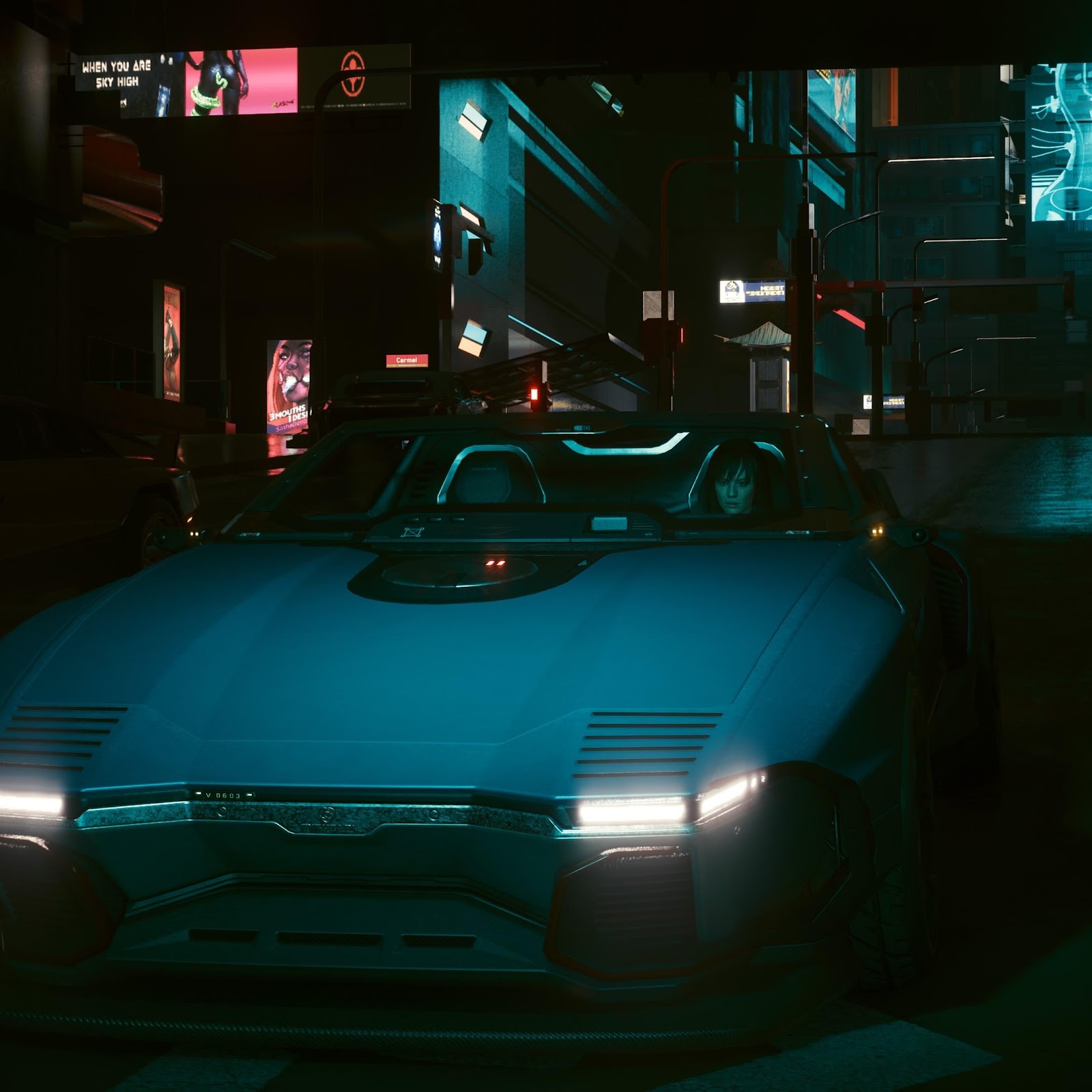 Cyberpunk 2077, Futuristic Car, Neon City Night, Sci-Fi Aesthetic 4K Desktop Wallpaper