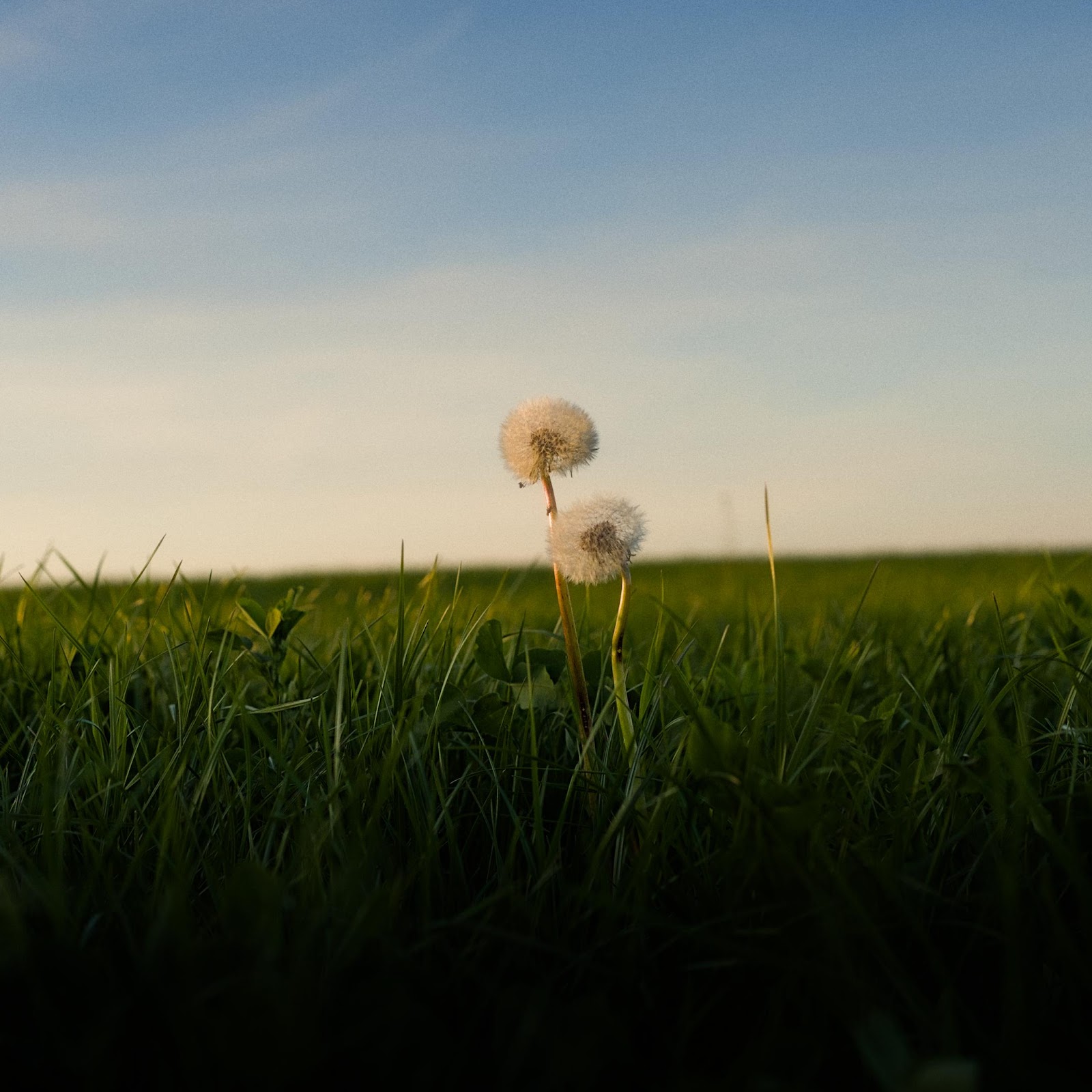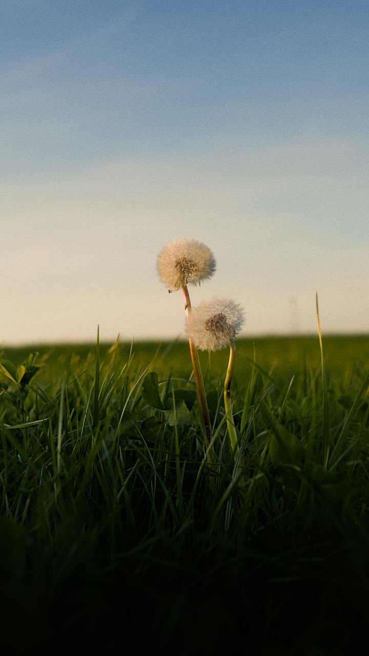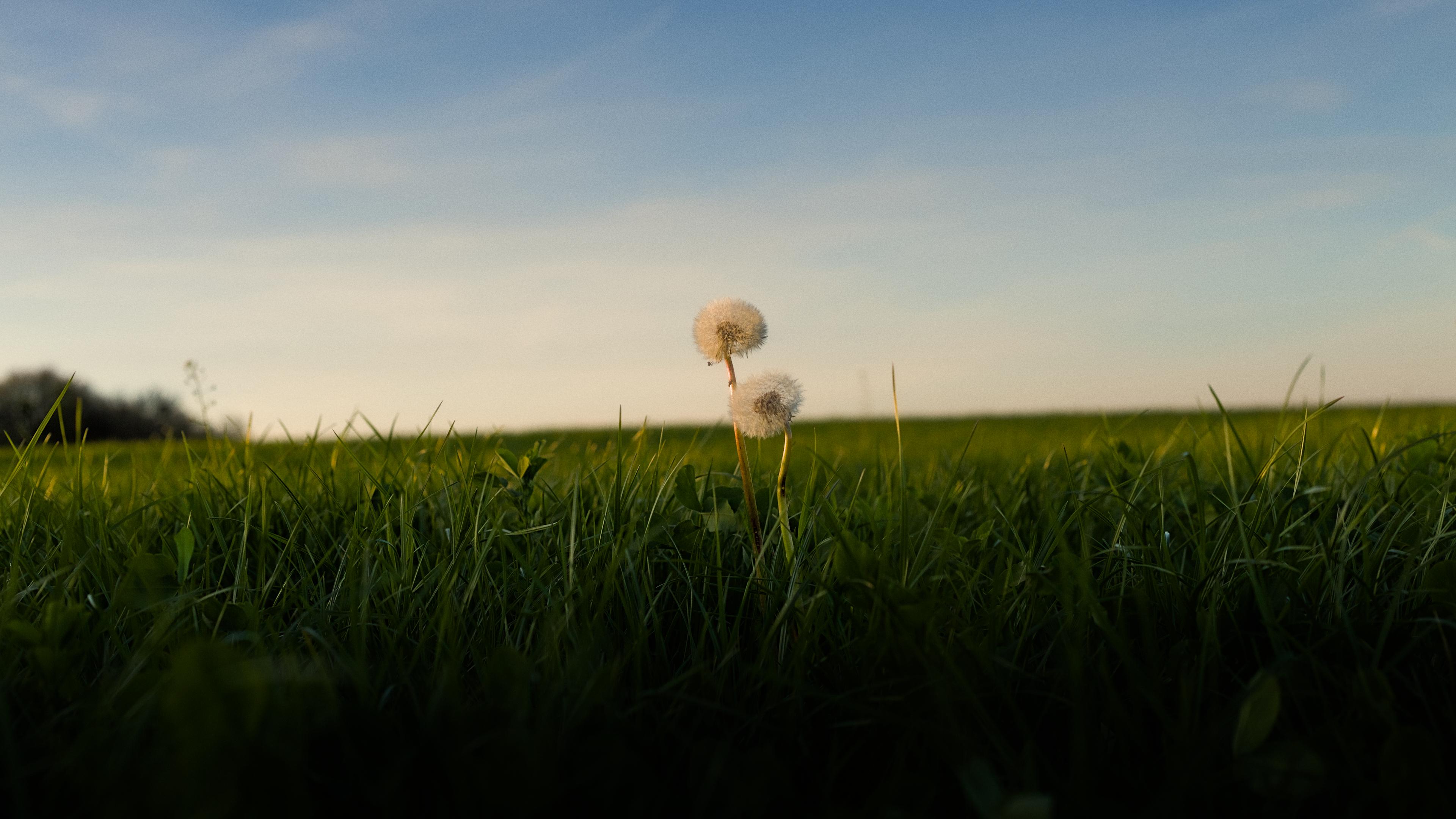 Dandelion Field, Green Meadow, Nature Landscape, Sunset Dandelions 4K Desktop and Mobile Wallpaper Background with a maximum resolution of 3840x2160 px.