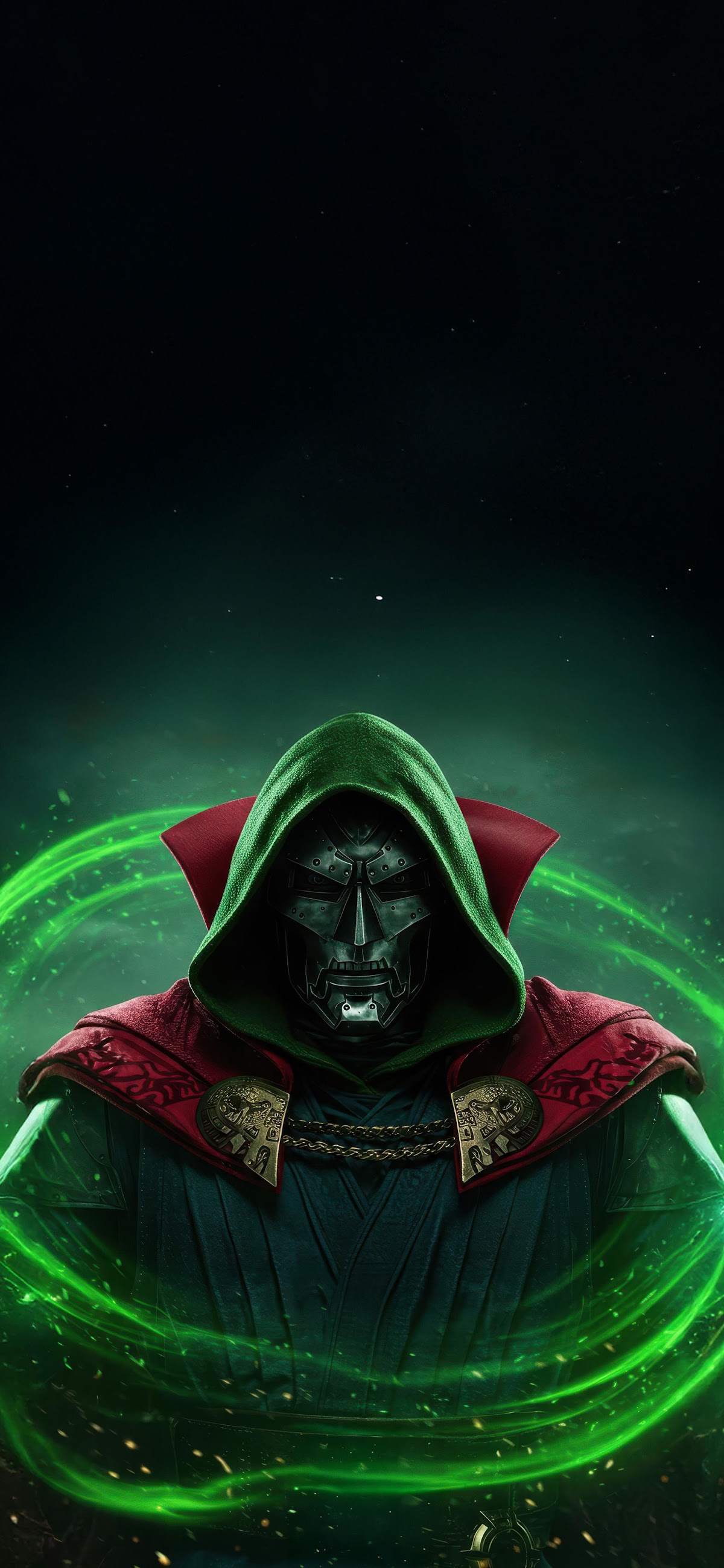 Doctor Doom Master Of Dark Magic 2K iPhone Wallpaper Doctor Doom stands empowered by green mystical energy wearing his classic metallic mask and crimson and green robes. cf852 536.80 KB 1956x4236 Download original File Size: Dimensions: Resolution: 2K Format: Mobile ID: Comic Book Digital Art Doctor Doom Green Green Energy Marvel Supervillain